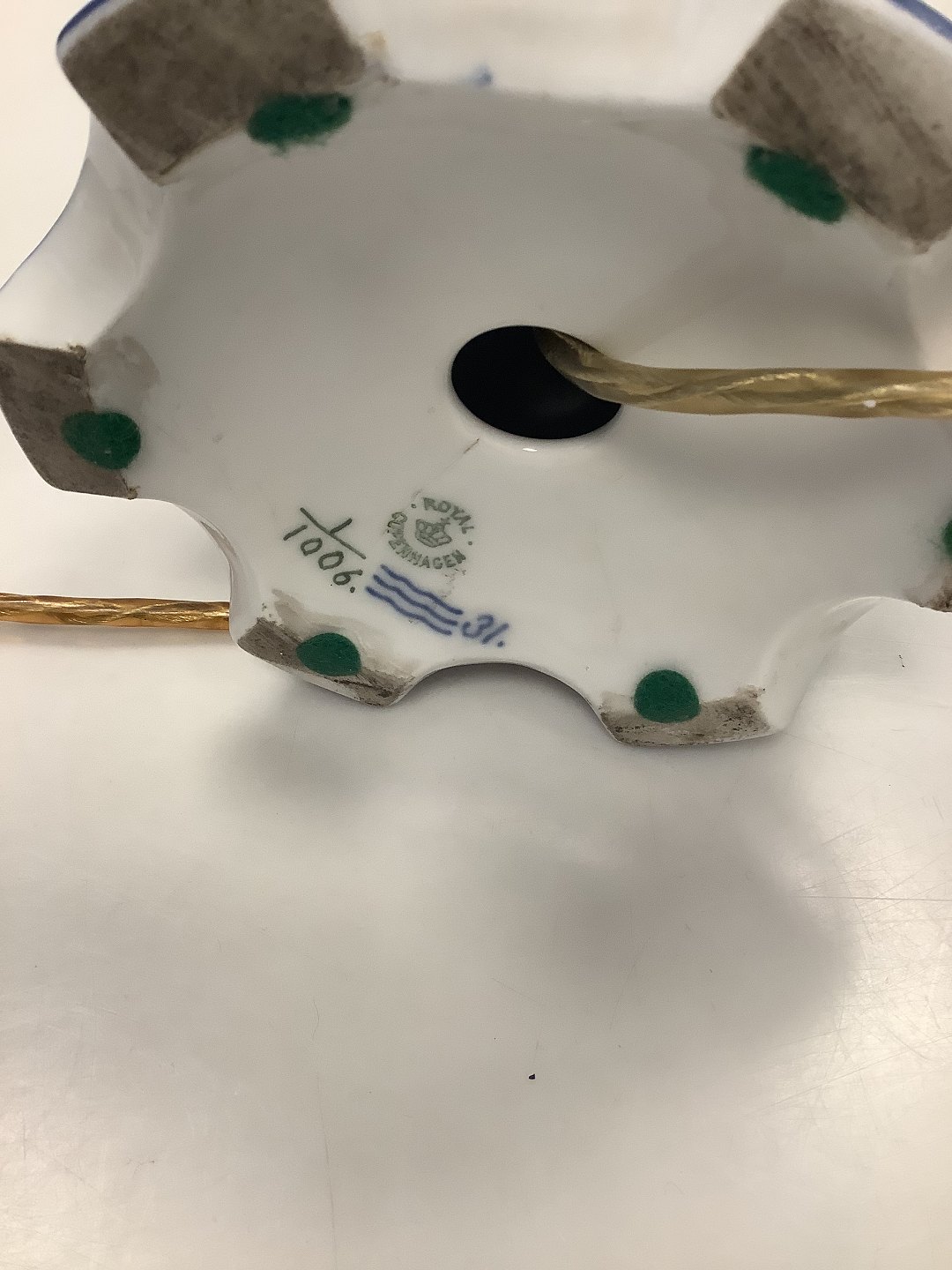 Royal Copenhagen Musselmalet Helblonde Lampe / underdel til 5 armet lysestage No 1006