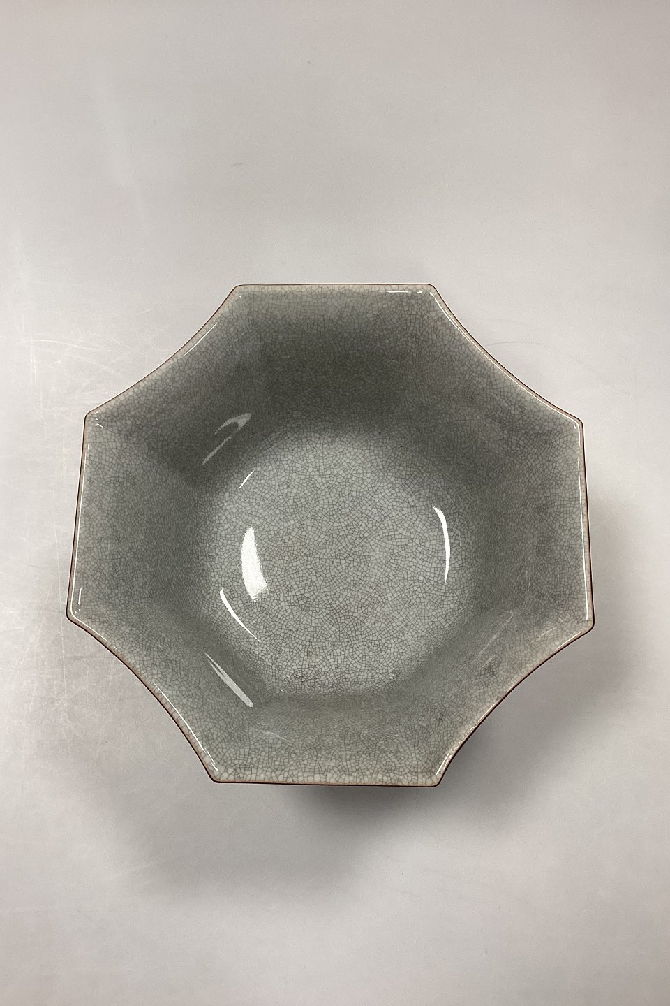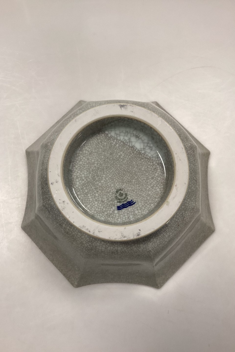 Royal Copenhagen Octagonal Cracked Bowl. 1st Quality. Måler 25.5 cm x 12.5 cm/ 10.03 in. x 4.92 in.