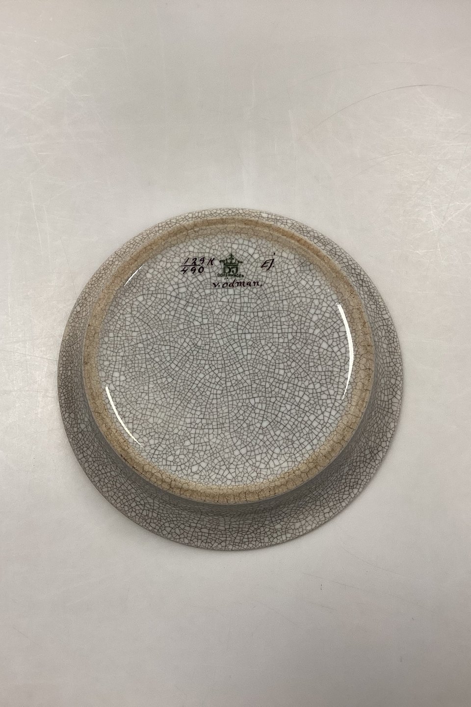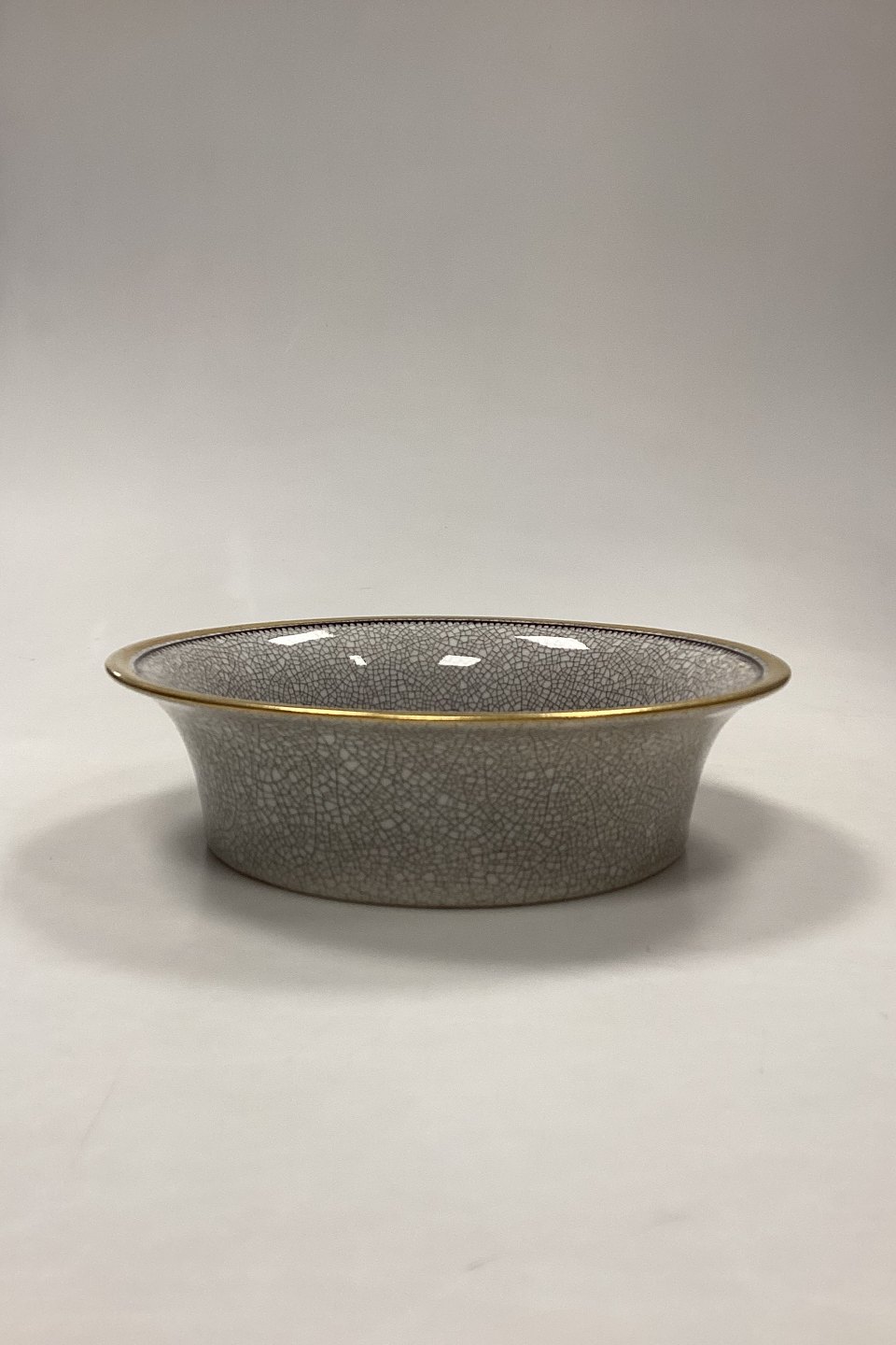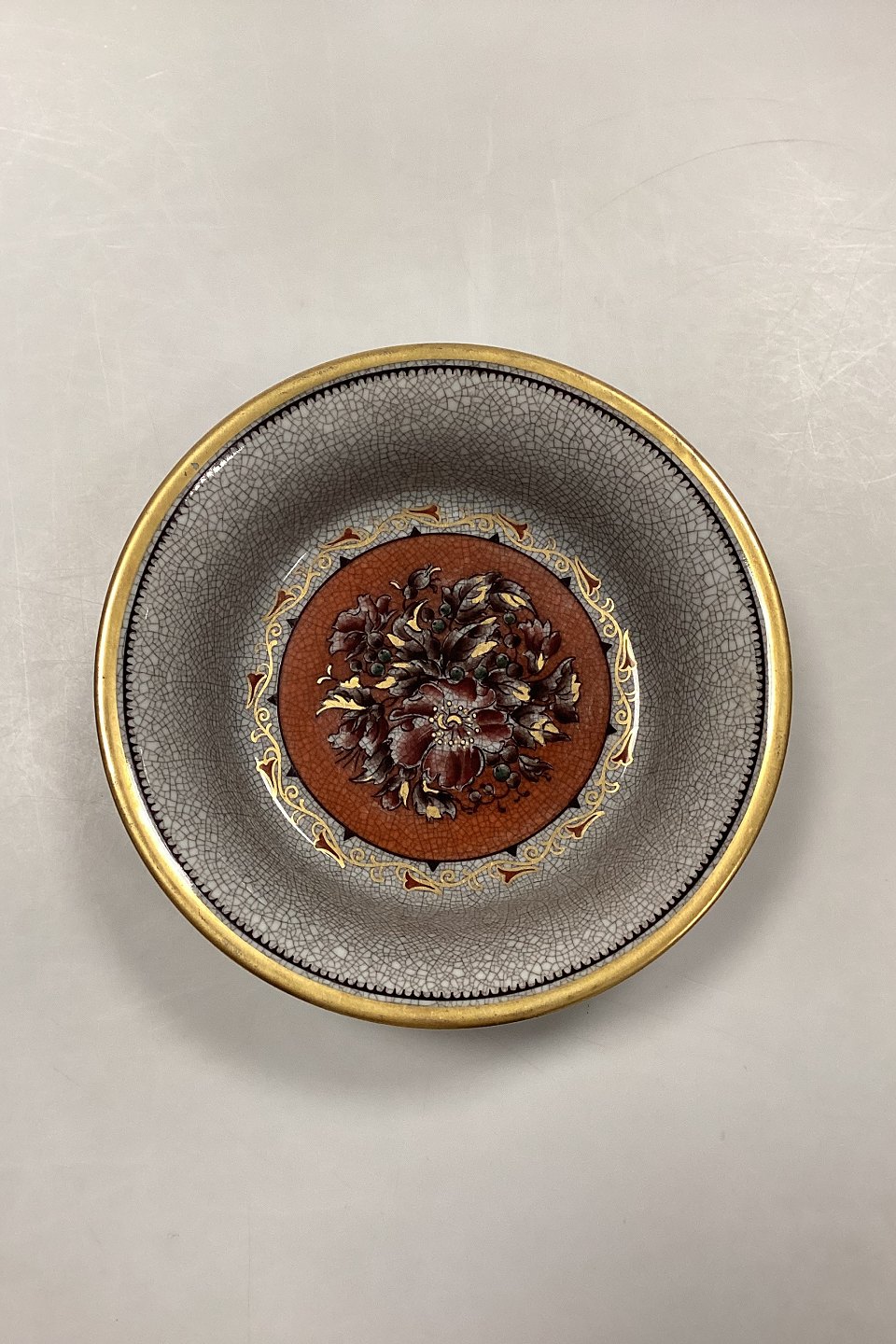 Dahl Jensen Craquelé Skål No. 129/490. Dekoration i siena rød, hvid og guld. Lettere slid på guldkanten. Unika eksemplar malet af V. Ödman.