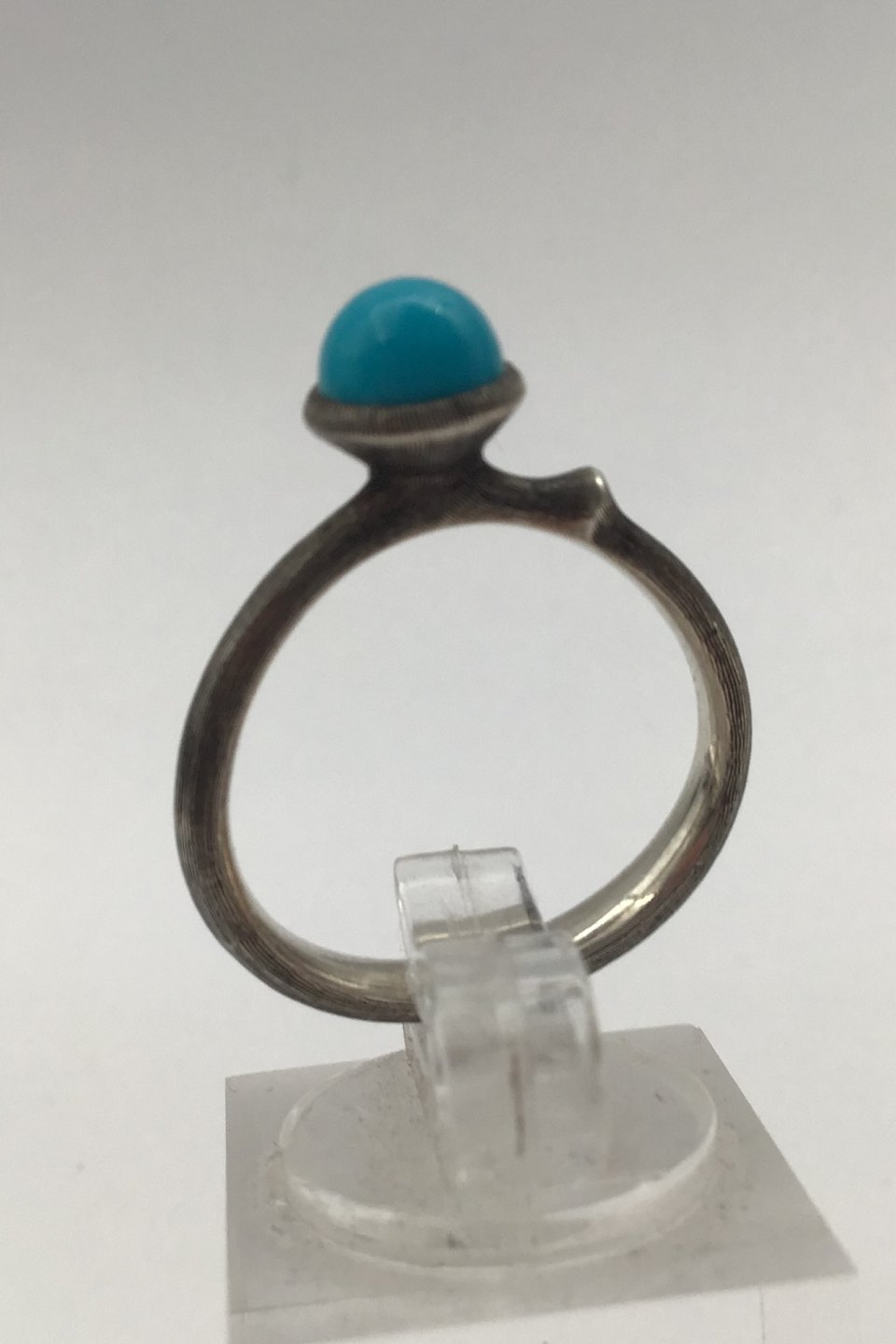 Ole Lynggaard Sterling Silver Lotus Ring (Turquoise) Measures Ring Str. 52 (US 6) Weight 3 gr (0.10 oz)