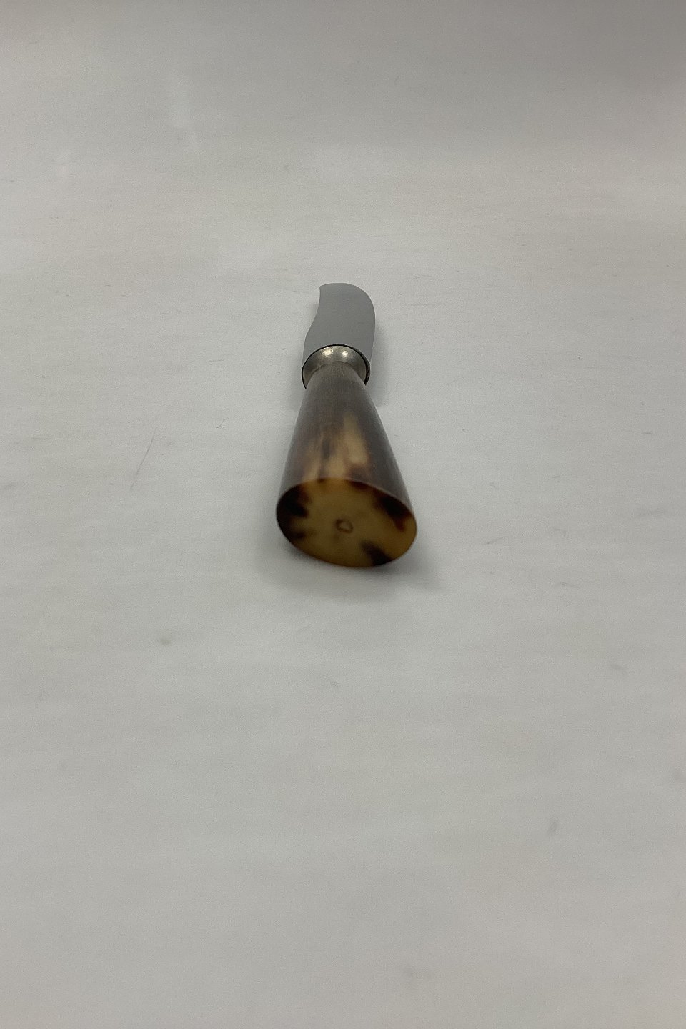 Rustfri Kniv med Hornskaft. Mærket ukendt. Måler 24,5 cm / 9,64 in. I fin men brugt stand.