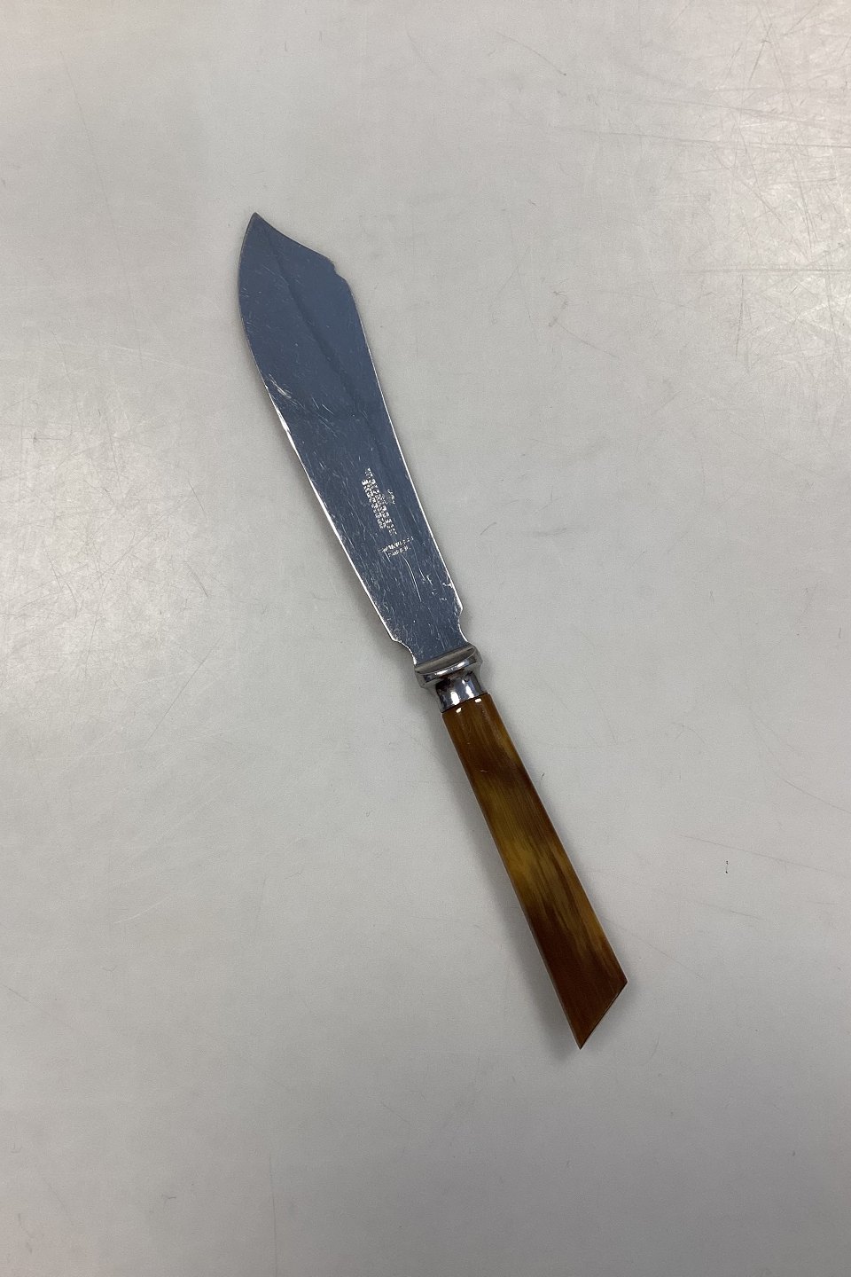 W. Richardson Sheffield Stainless Kagekniv med gyldenbrunt bakelitskaft. Måler 23,5 cm / 9,25 in. I rigtig fin stand.