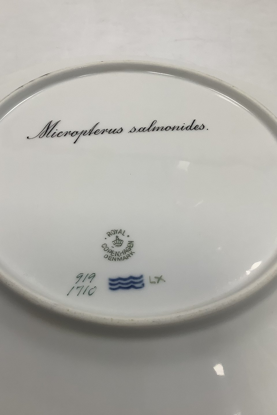 Royal Copenhagen Grøn Fisketallerken No 919/1710 med Micropterus salmonides