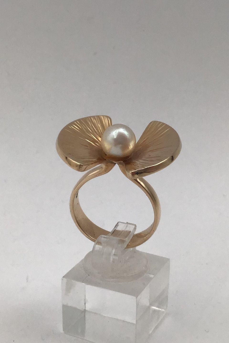 Bent Gabrielsen 14K Gold Ring w Pearl Measures Ring Size 57 (US 8) Weight 13.1 gr (0.46 oz)
