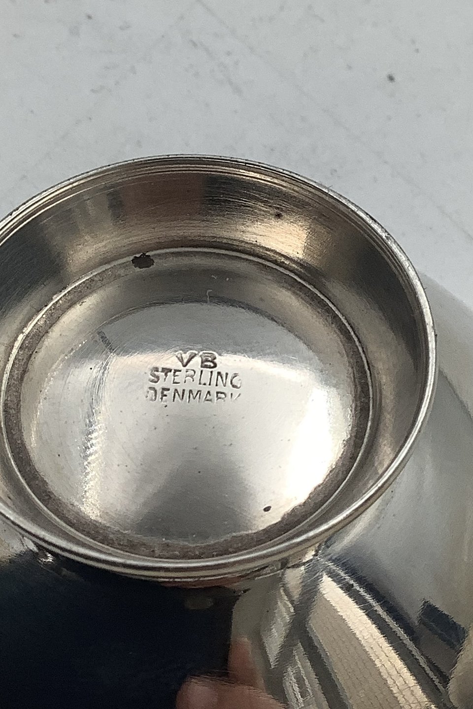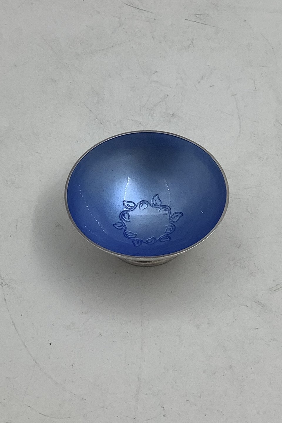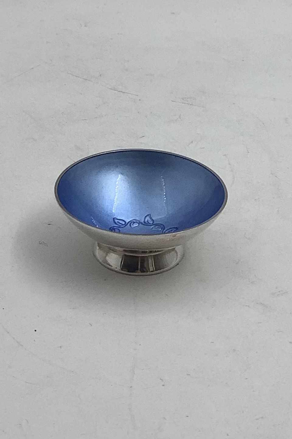 Volmer Bahner Sterling Silver Salt Dish Blue Enamel with spoon