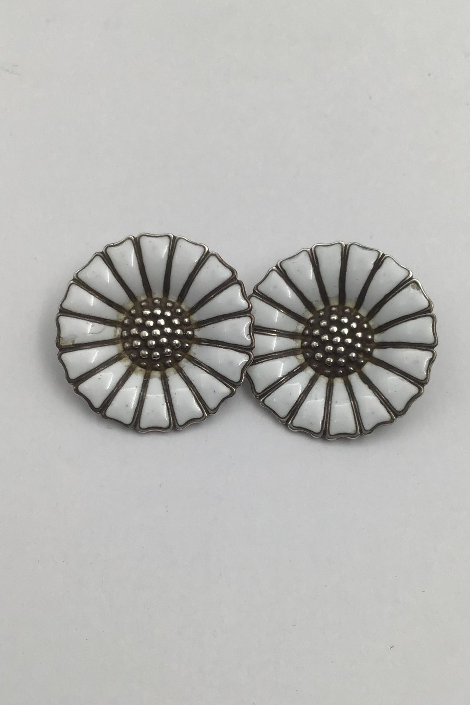 Georg Jensen Sterling Sølv Marguerit Øreclips (Stor) Måler Diam 2.4 cm (0.95 inch) Samlet vægt 11.5 gr. (0.41 oz) (Emalje fejl)