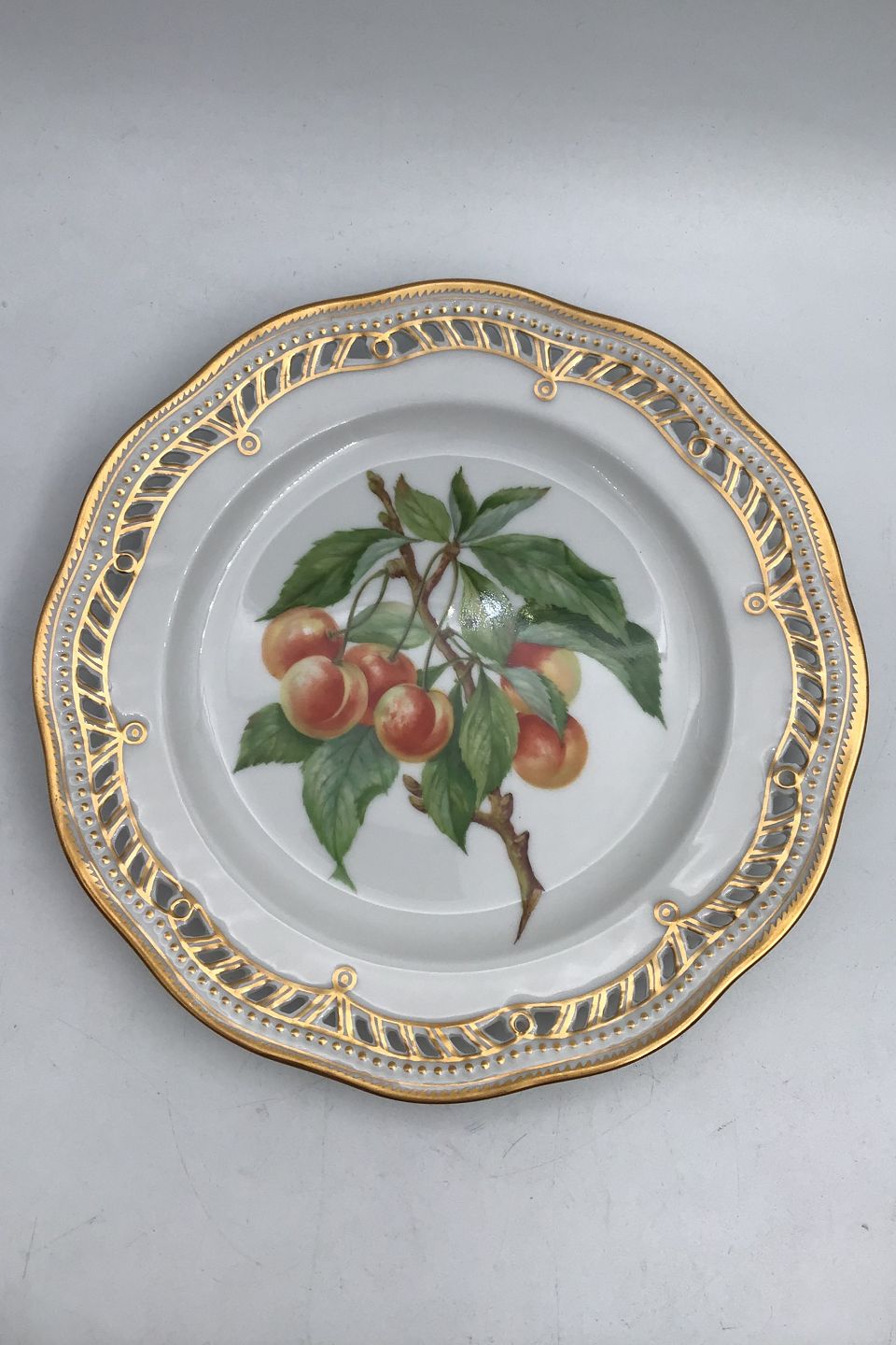 Royal Copenhagen Flora Danica Fruit Plate No. 429/3584. Measures 22.2 cm / 8.74 inch. 1st Quality. Pierced Border.