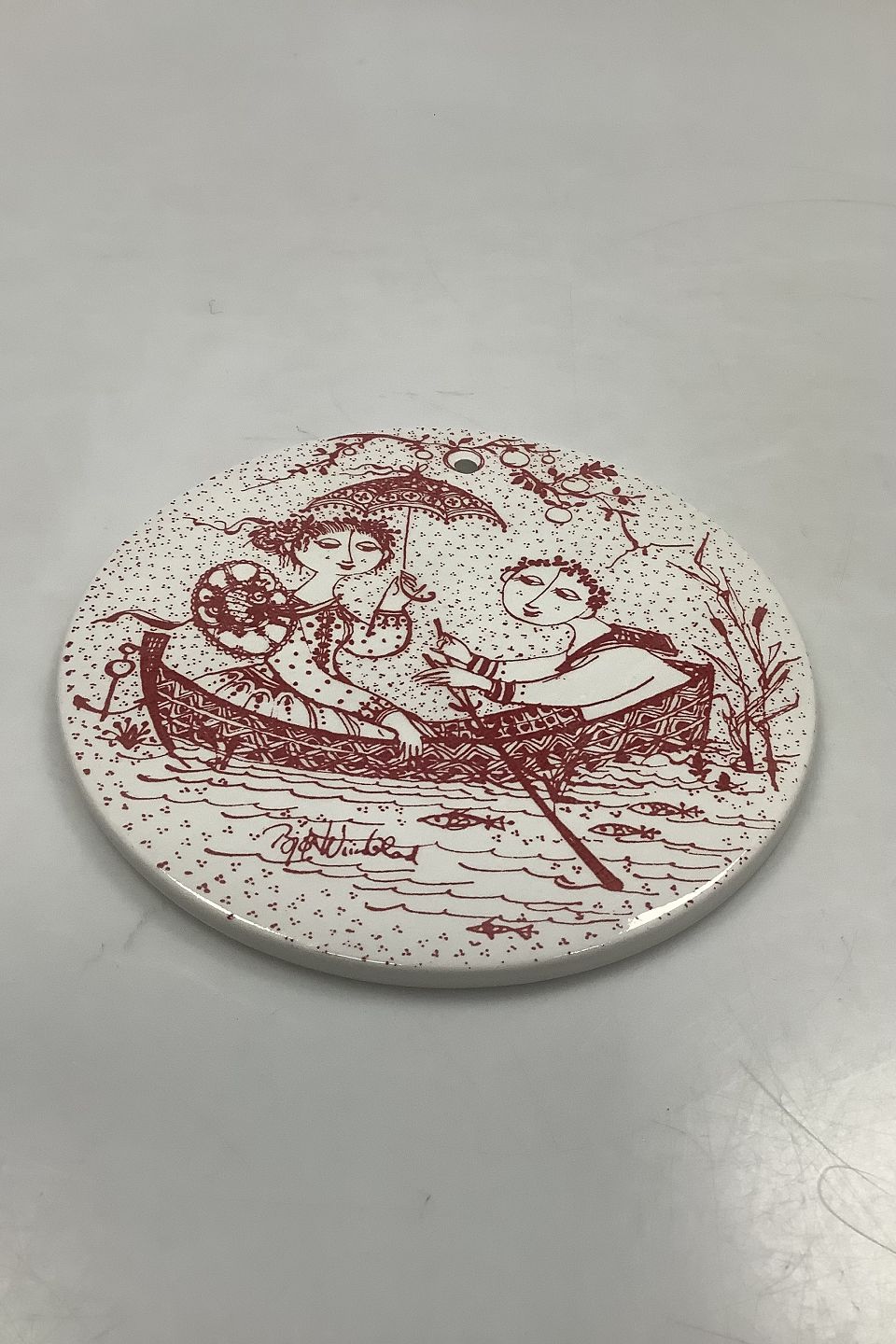 Red Monthly plate in faience for July - NOCTURN. Designed by Bjørn Wiinblad for Nymølle. In perfect condition. The factory mark on the back. Dimensions: 15 cm (5.90 inches)