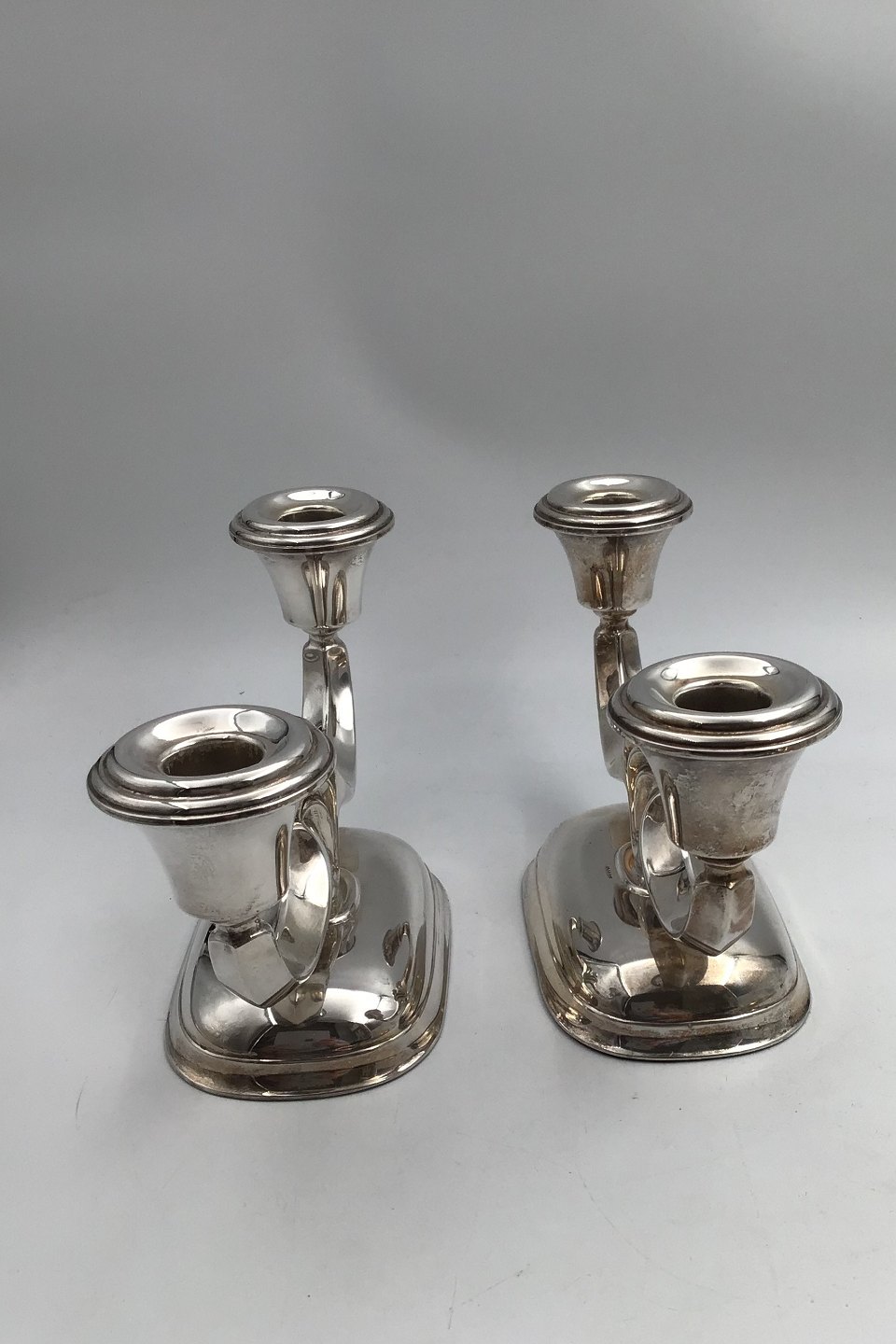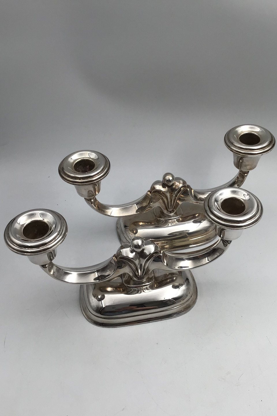 David Andersen Silver Two branch Candle Sticks (2) (1888-1925) Measures H 12.5 cm (4.92 inch) 24 cm x 8.5 cm (9.44 inch x 3.34 inch) Combined Weight (filled) 975 gr (34.39 oz)