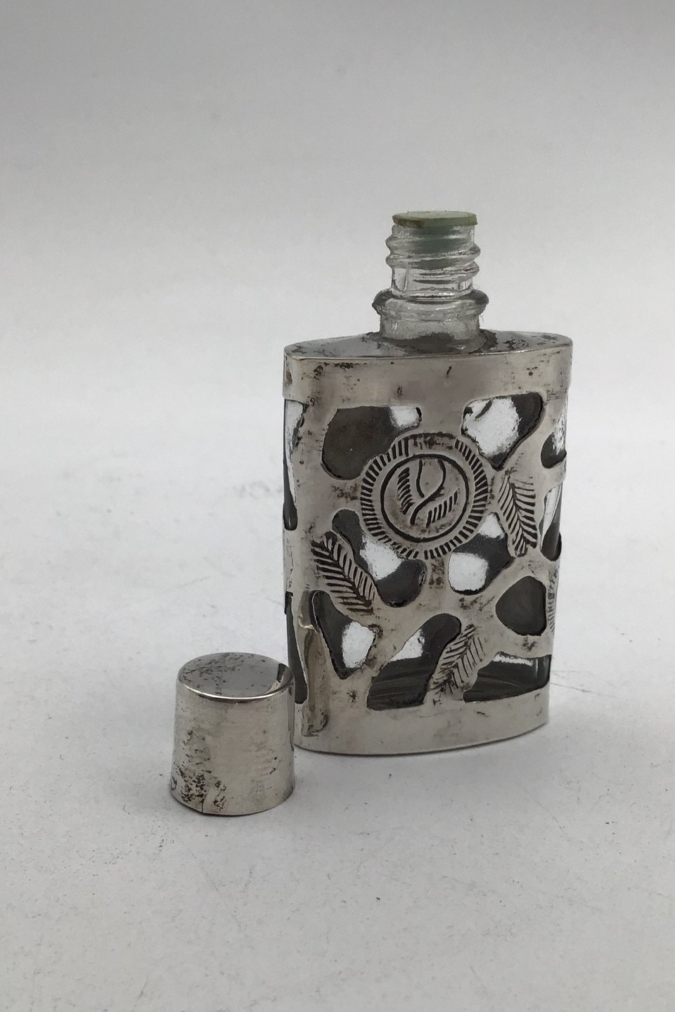 Mexico Sterling Silver / Glas Perfume Bottle Measures H 6.2 cm (2.44 inch)