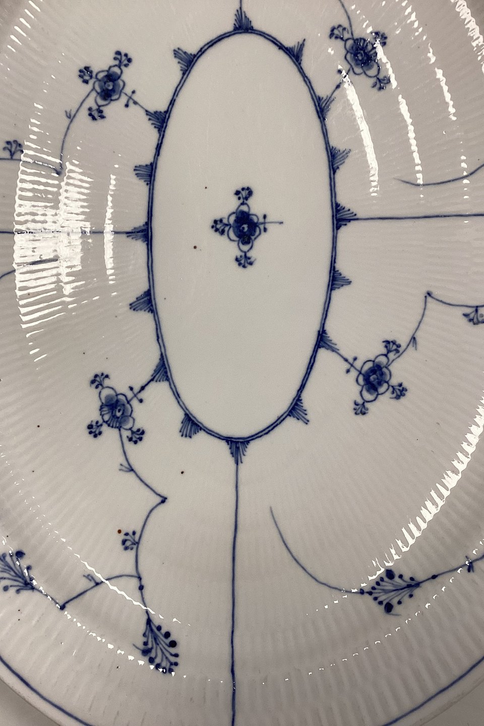 Royal Copenhagen Blue Fluted Plain Antique Dish. Slightly crooked at the edge and with small black burning sparks (see photo).