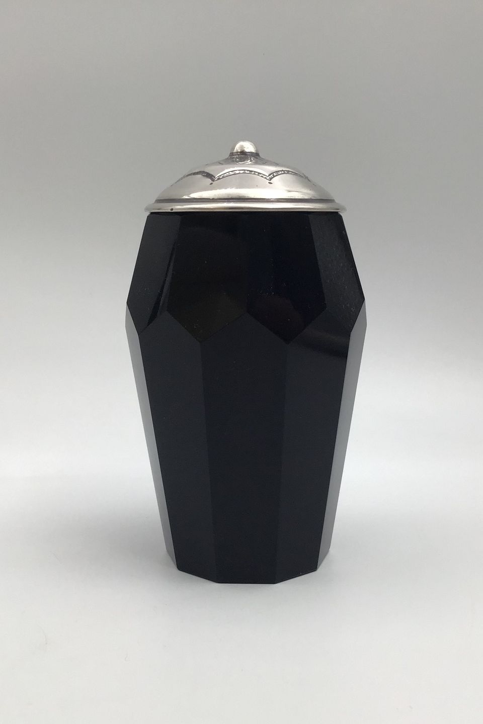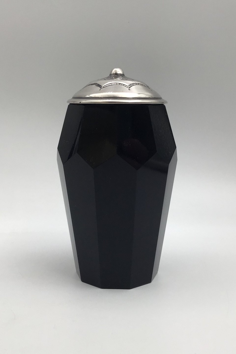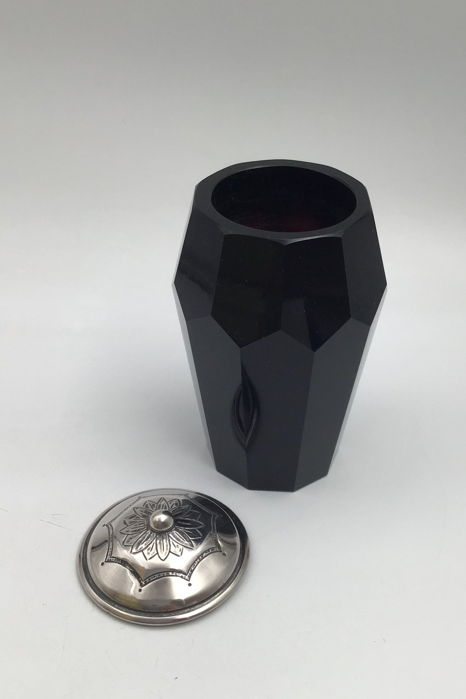 Ruby red Art Deco Glasvase with Silver Lid Measures H 10.5 cm (4.13 inch) (12.5 cm with lid / 4.92 inch with lid) Diam 7 cm (2.75 inch)