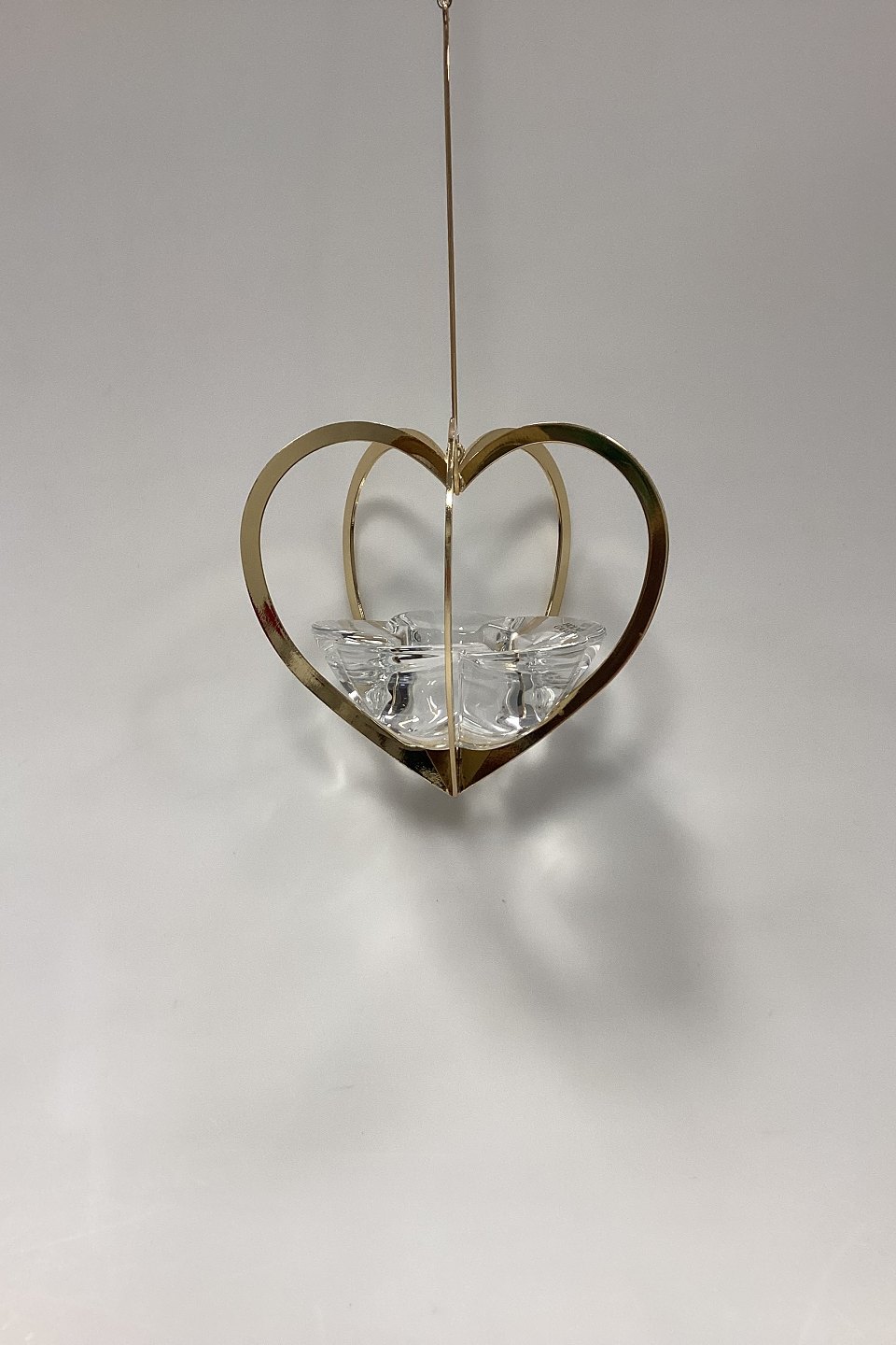 Holmegaard Golden Christmas Fyrfadslysetage i hjerteophæng fra 2005. Designet af Jette Frölich. Måler ca. 13 cm x 11 cm / 5,11 in. x 4,33 in.