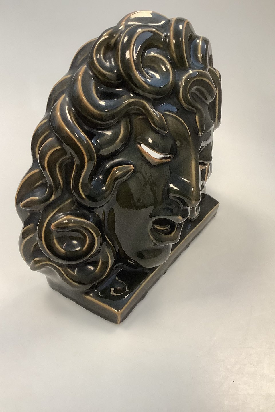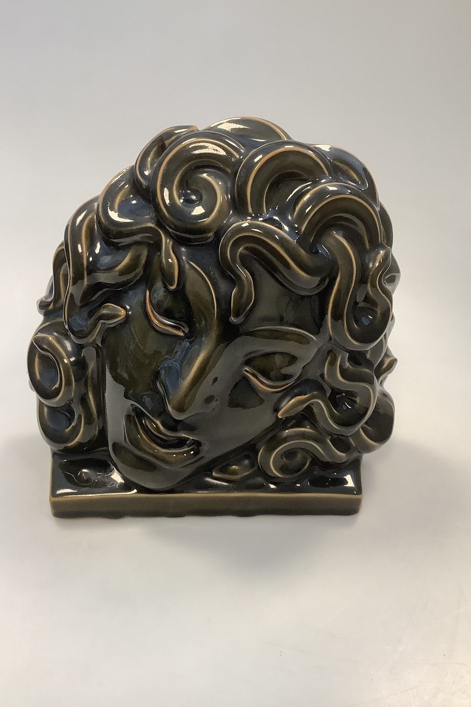 Oliven Grøn Royal Copenhagen Grøn Celadon Maske af Medusa No 2950, Royal Copenhagen Grøn Celadon Maske af Medusa No 2950, Hans Henrik Hansen 1927.