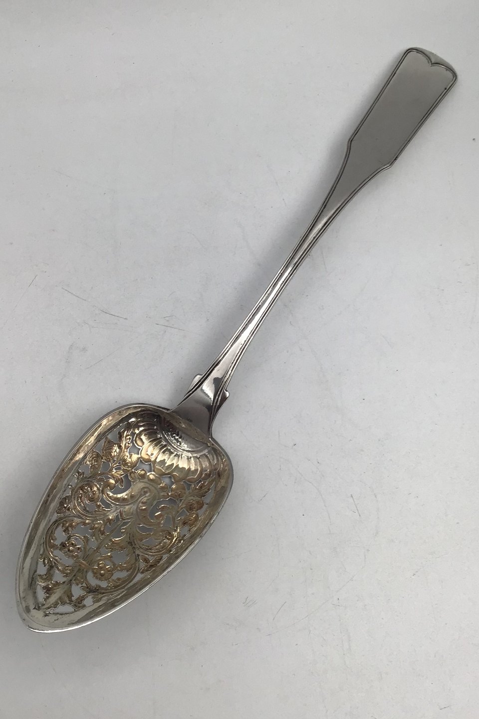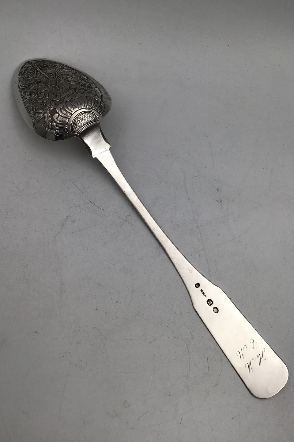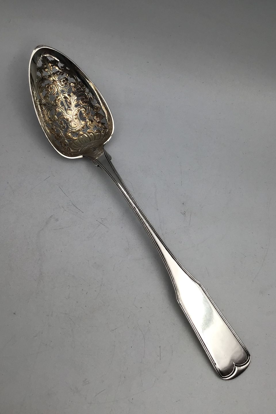 Engel Gammel Riflet Silver Berry Spoon (1848) Measures 30.5 cm (12 inch) Partially Gilded (Engraved)