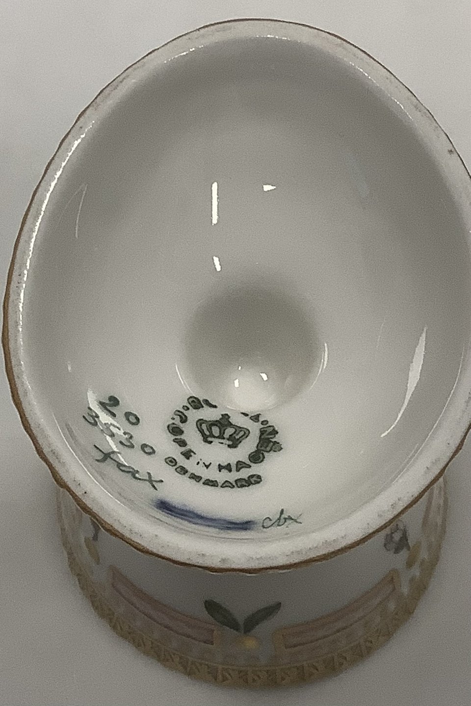 Royal Copenhagen Flora Danica Egg Cup No 20/3530 or new no. 696. 5.5 cm (2 11/64") H. 4.5 cm dia (1 49/64"). In perfect condition.