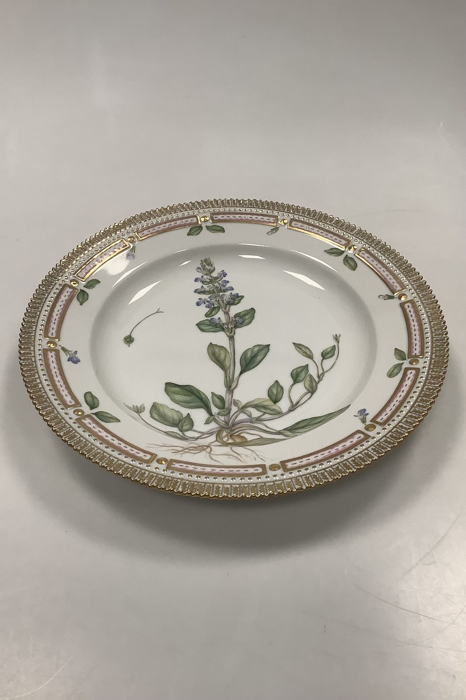 Royal Copenhagen Flora Danica Spisetallerken No. 20 / 3549 Måler Diam 26 cm. (10.23 inch) 1. Sortering. Latinsk Navn: Ajuga Reptans L
