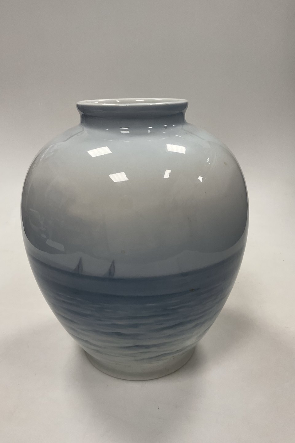 Bing and Grøndahl Art Nouveau Unique Vase by Marianne Hyldahl No. 354. Motif. Kronborg Castle and Ship. Measures 23.5 cm / 9 1/4 in.