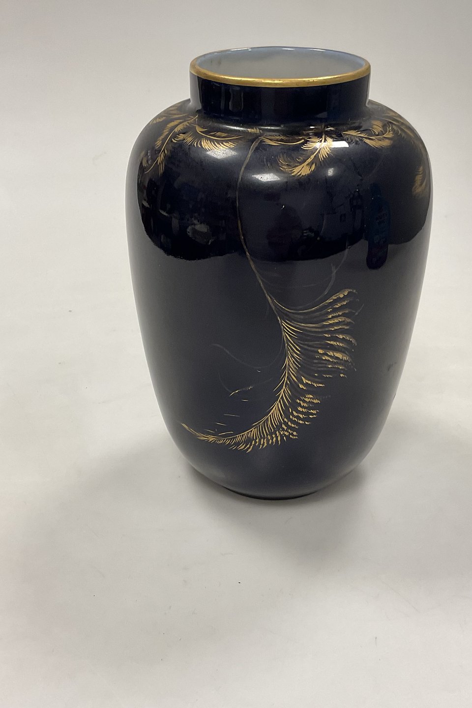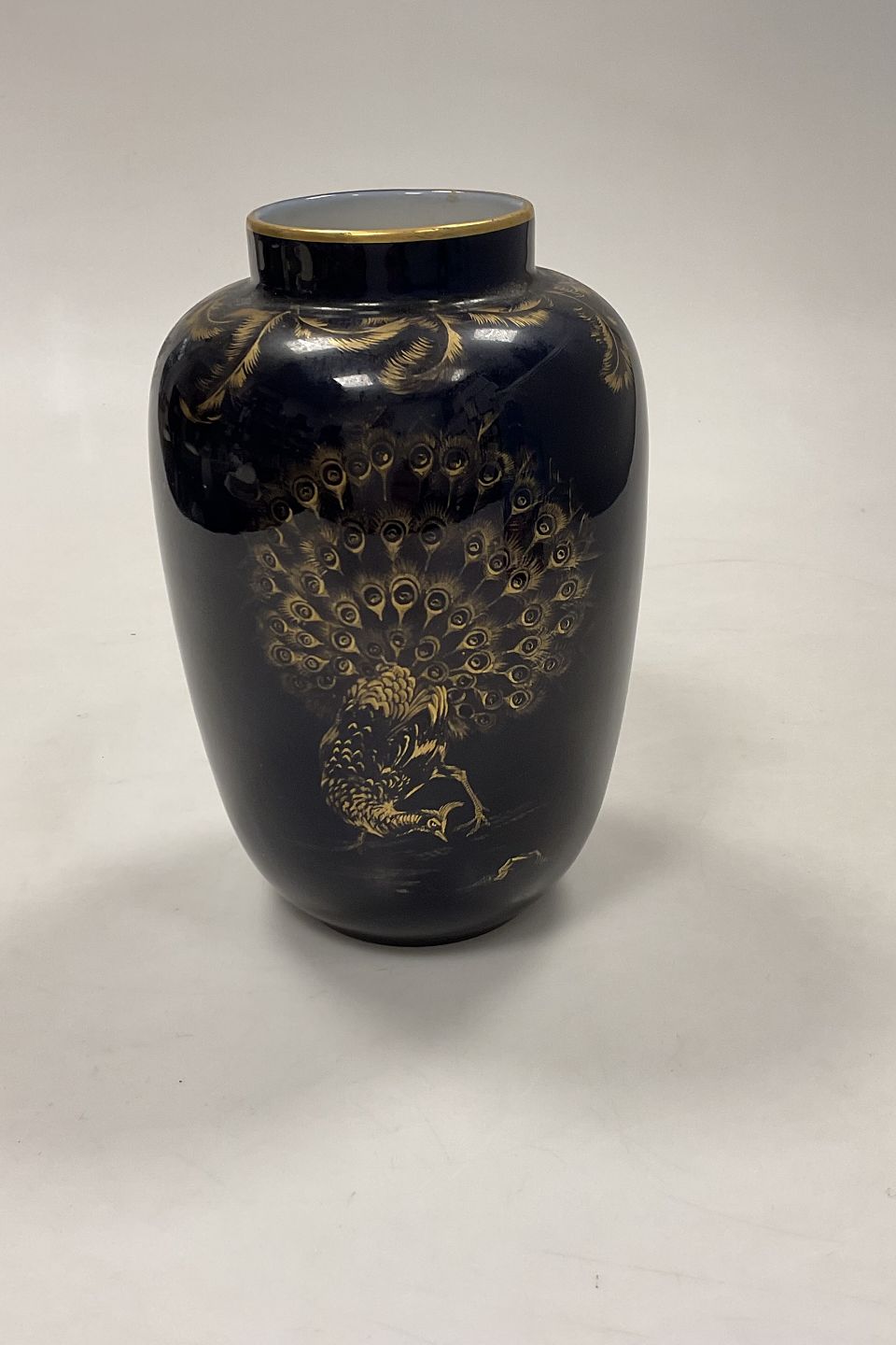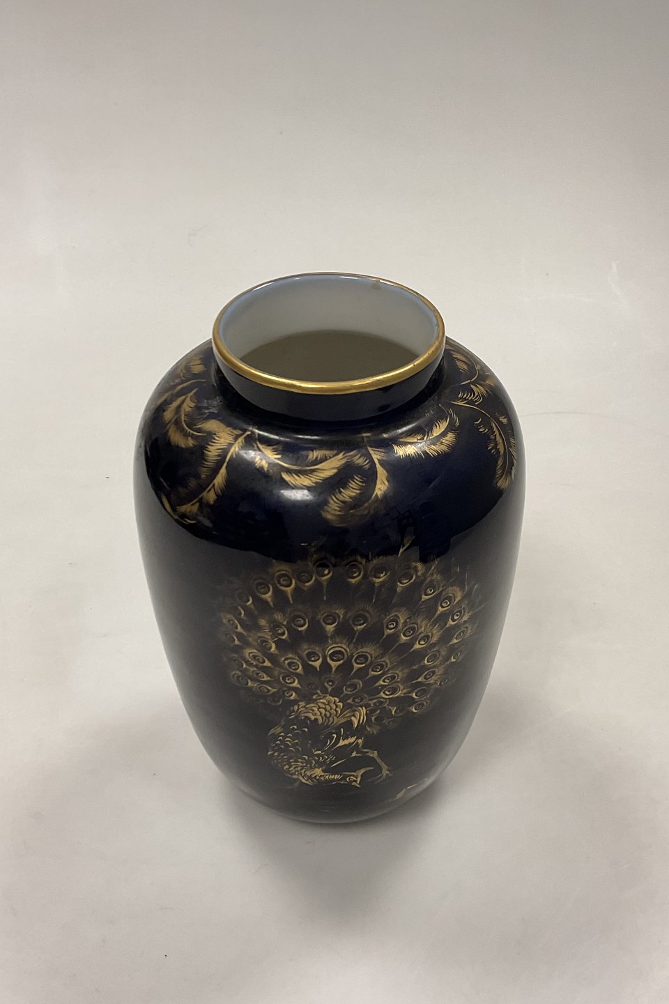 Early Royal Copenhagen Art Nouveau Vase with Peacock in gold and blue