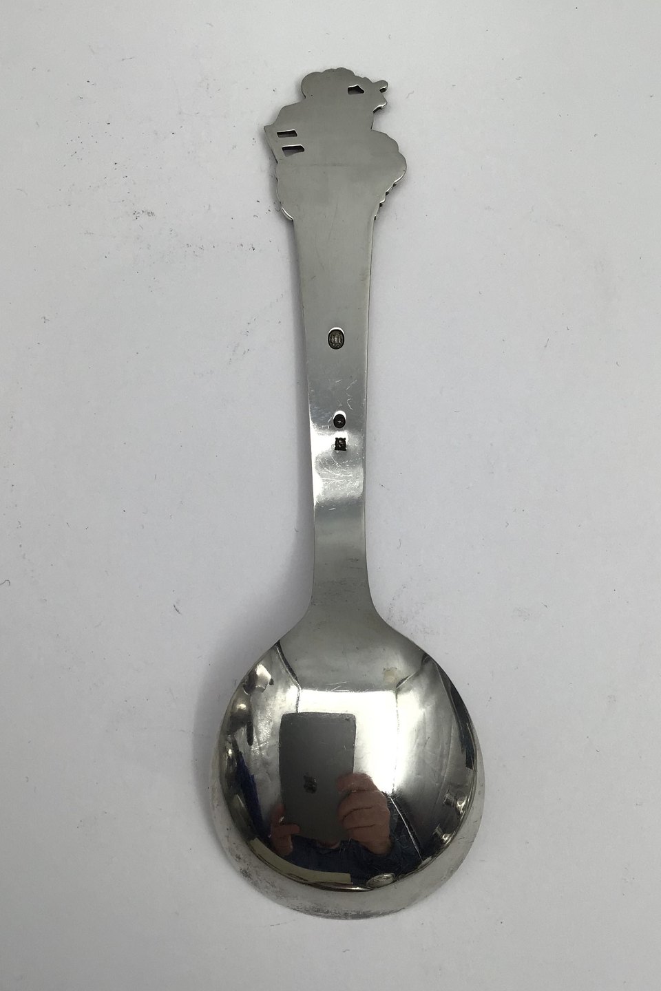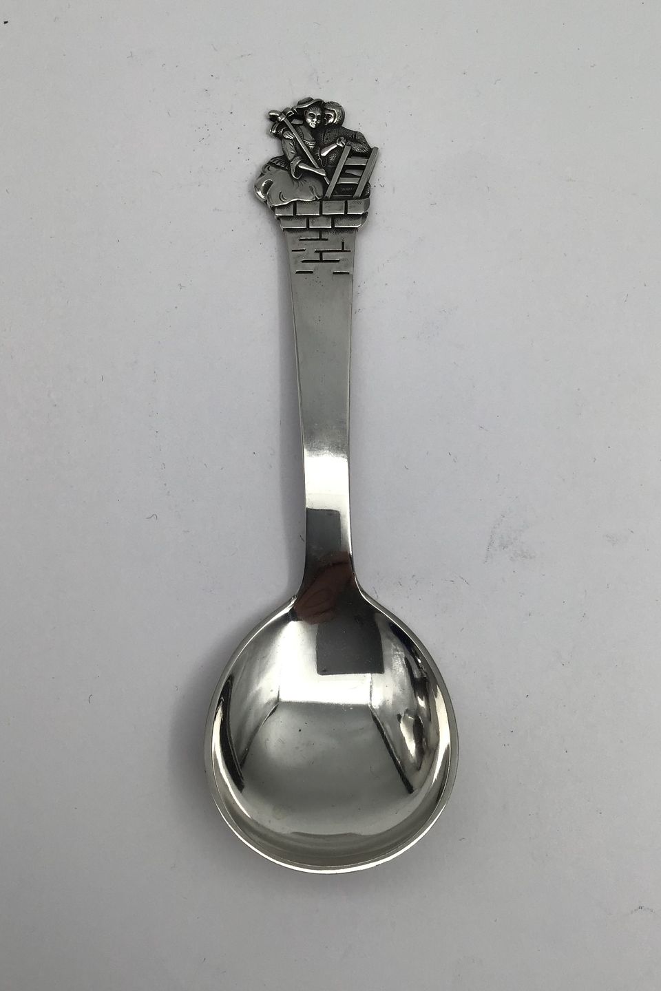 H.C. Andersen Fairytale Childs Spoon in Silver. The Shepherdess and the Chimney Sweep Measures 14.5 cm (5.70 inch) Round Bowl