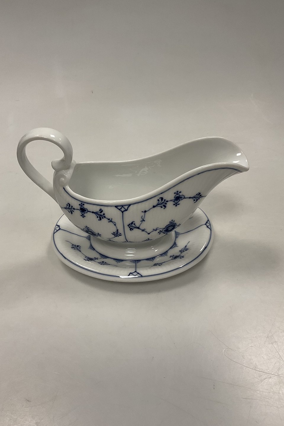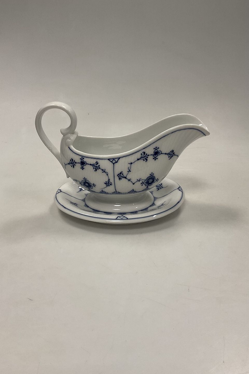 Royal Copenhagen Musselmalet Riflet Saucekande med Underskål No 200. Måler 20 cm x 14 cm ( 7 7/8 in. x 5 33/64 in. )