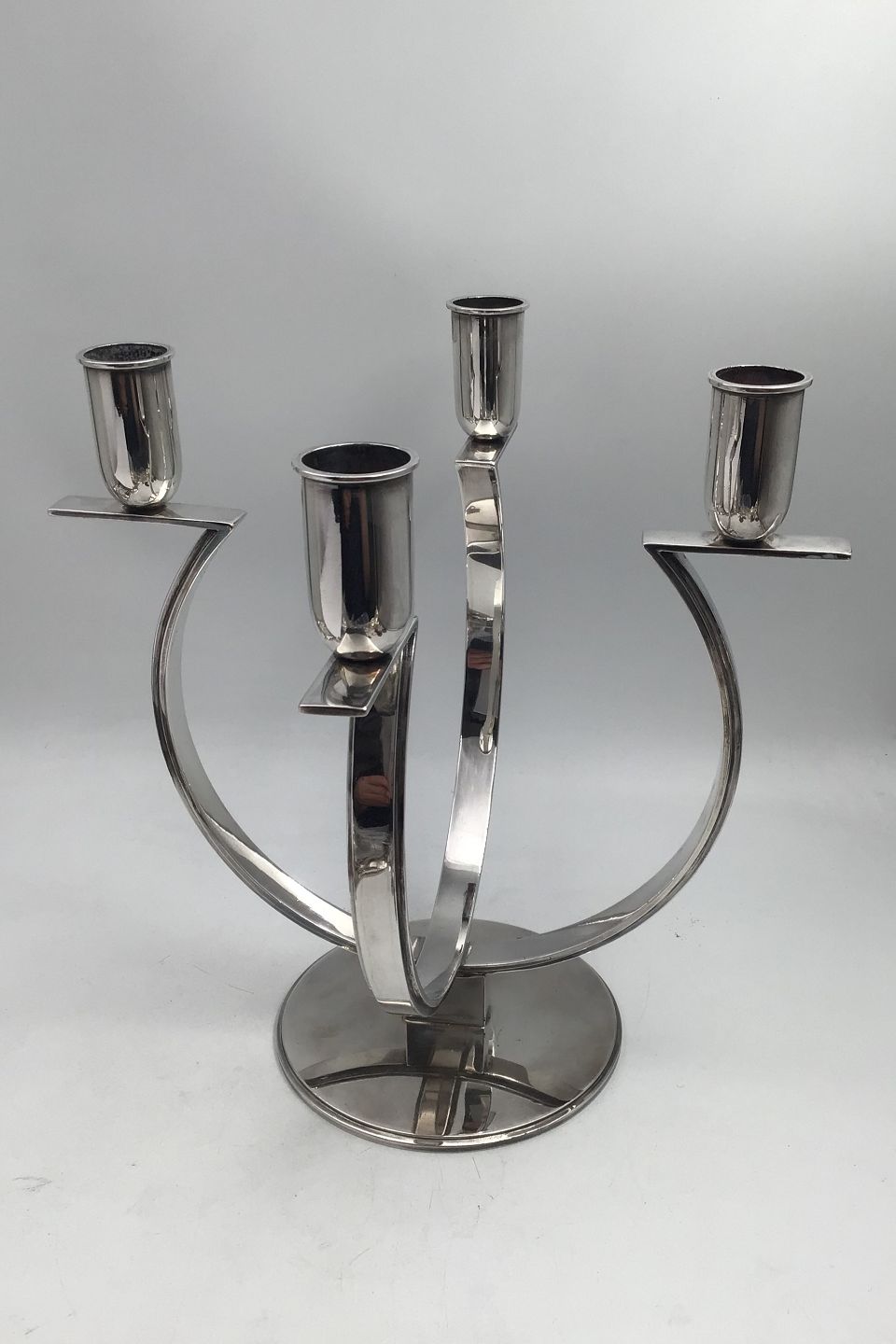 Frantz Hingelberg Sterling Sølv Fire-armet Art Deco Lysestage (1932) Måler H 25 cm (9.84 inch) Diam 25 cm (9.84 inch) Vægt 1275 gr (44.97 oz)