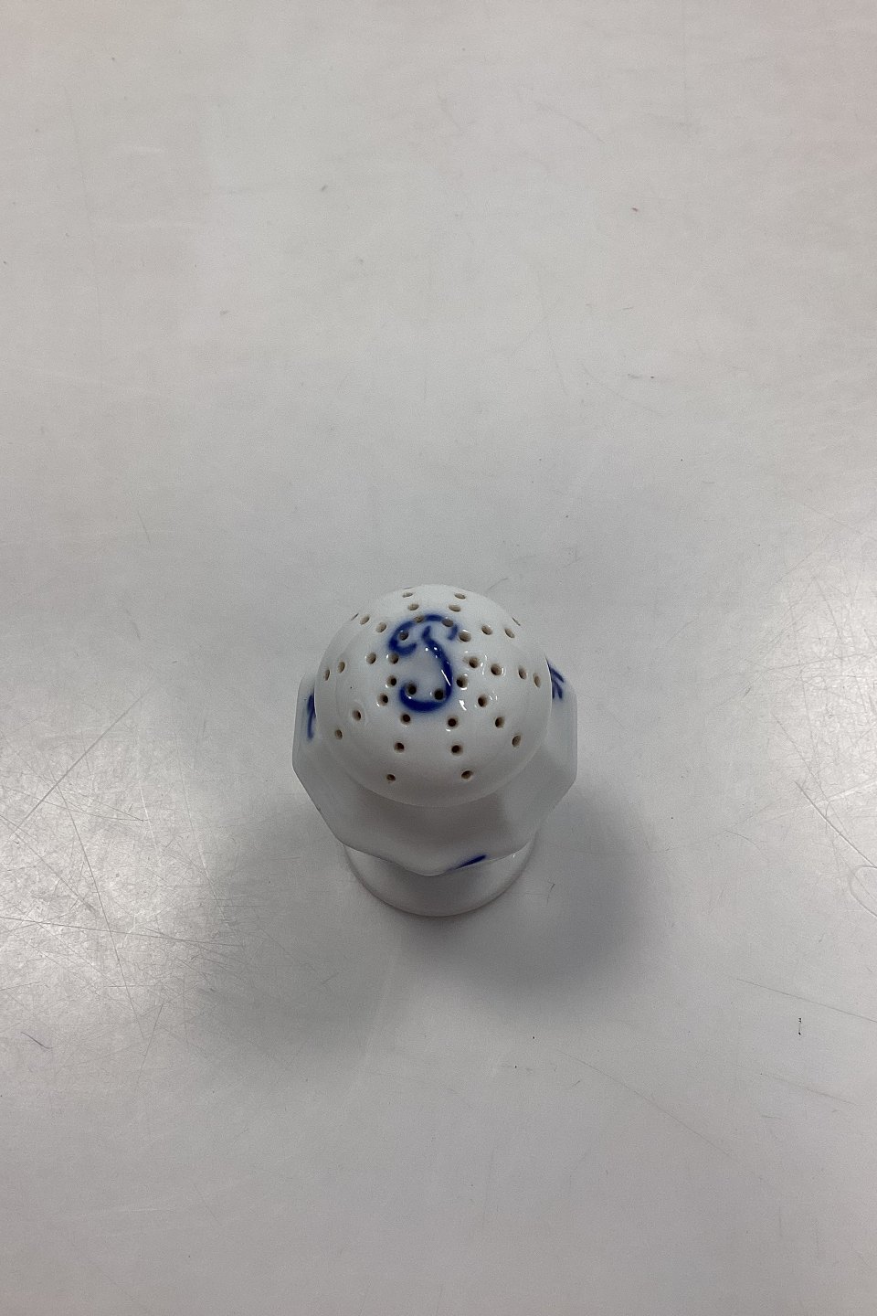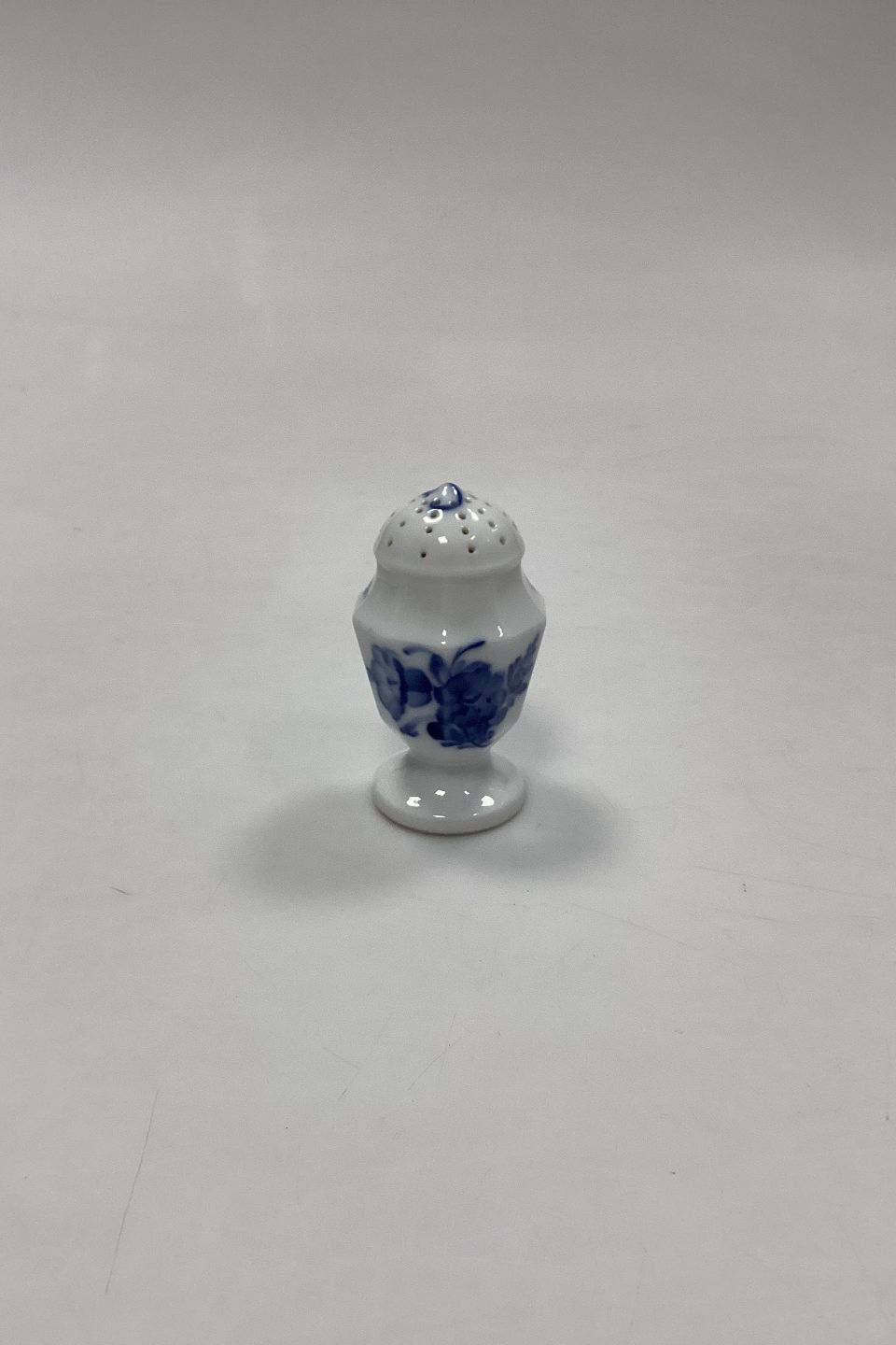 Royal Copenhagen Blå Blomst Kantet Peberbøsse No. 8584. Måler 7,5 cm / 2,95 in.