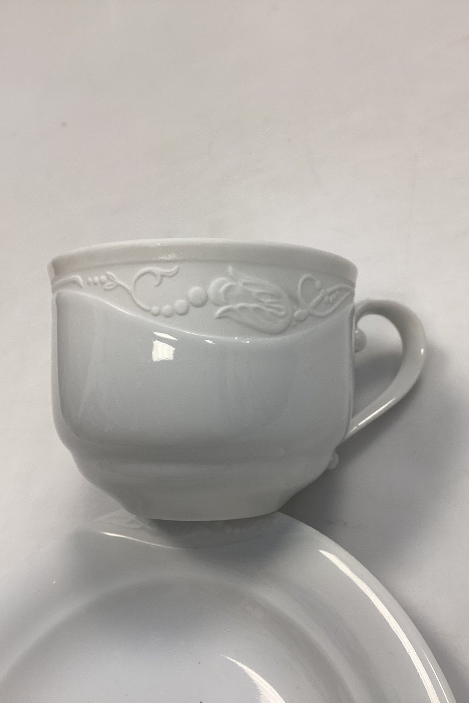 Royal Copenhagen Hvid Magnolia med uglaseret relief Kaffe -og underkop No. 72/73