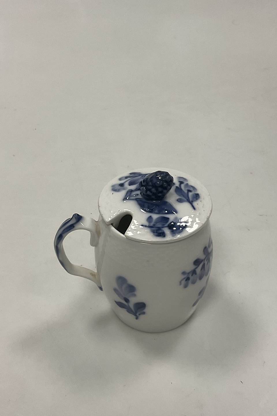 Royal Copenhagen Blue Flower Braided Mustard Cup with lid No. 8206. Measures 10cm / 3.94 inch