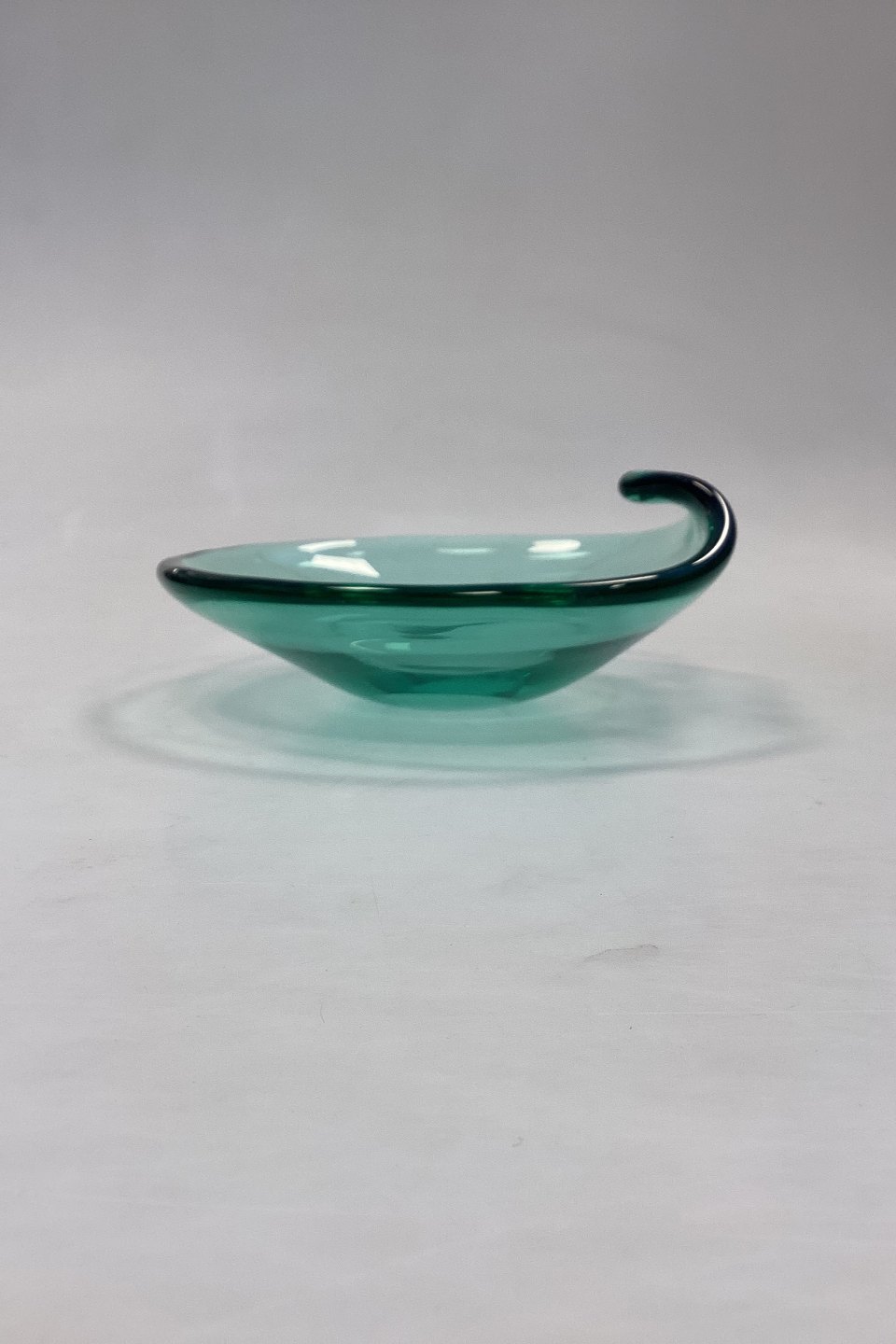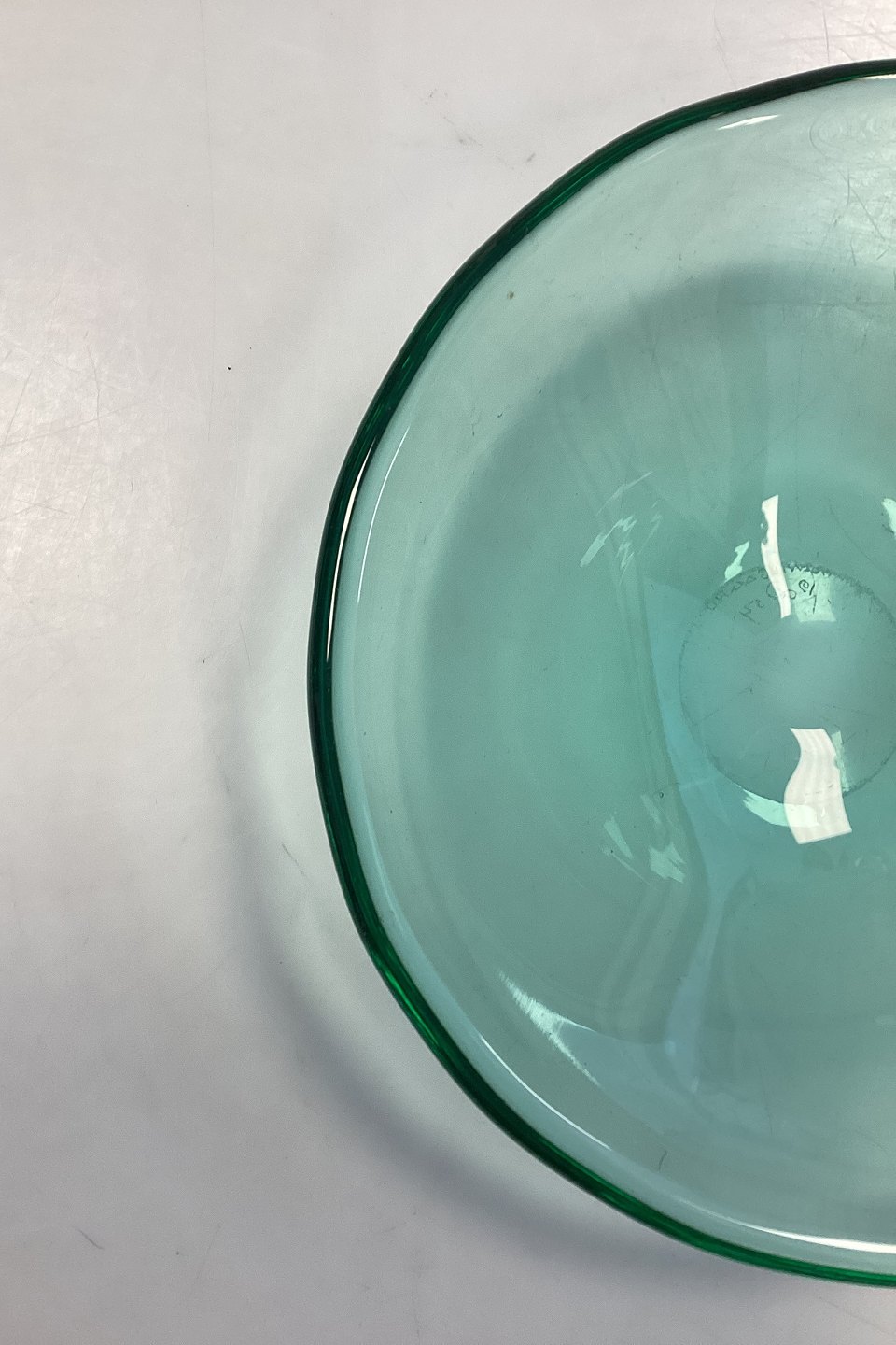 Holmegaard Surf Glass Bowl. Designed by Per Lutken. Color: Sea green. Signed HOLMEGAARD PL, and dated 1954. Light wear on the bottom, and the rim is a little uneven at the front, see photo.