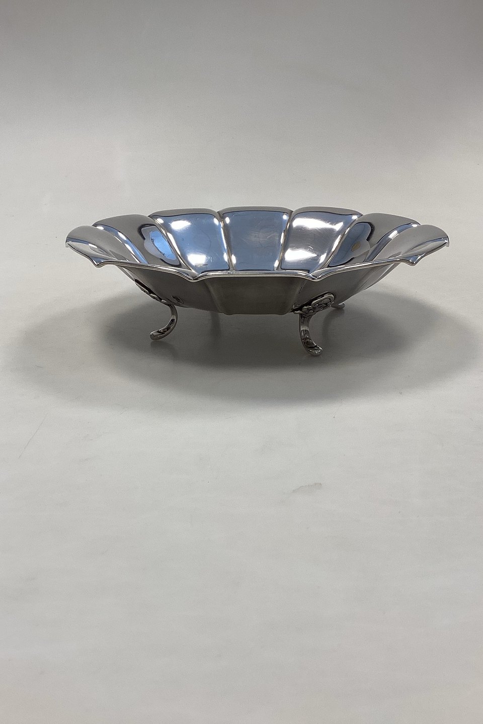 Danish ATLA Silver Plated Bowl. Stands on 4 legs, with lily decoration. Bowl shaped like a 12 petal flower. Measures 22.5 cm / 8.86 Inches