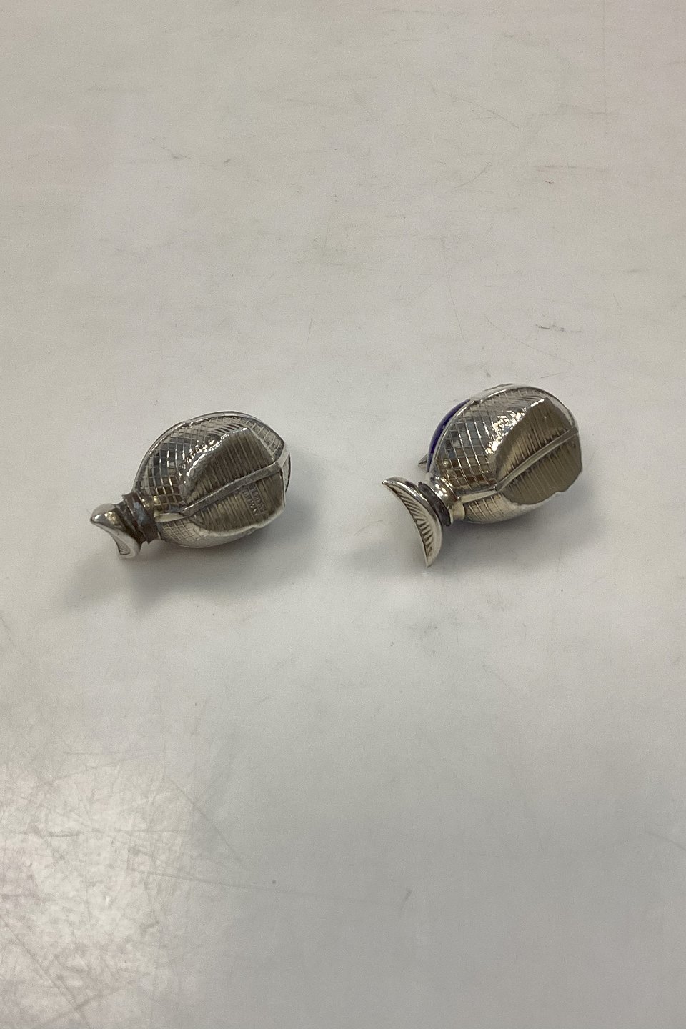 Norsk Sterling Sølv Salt & Peber Sæt rød og blå emalje fisk
