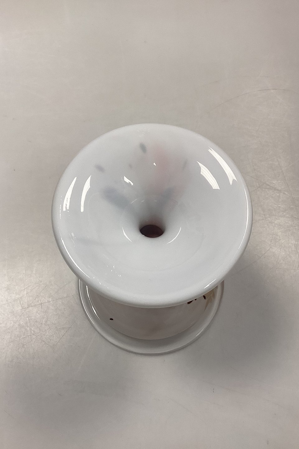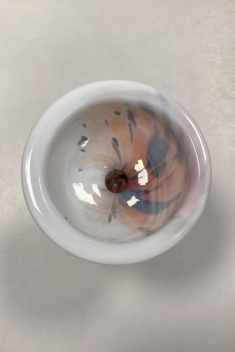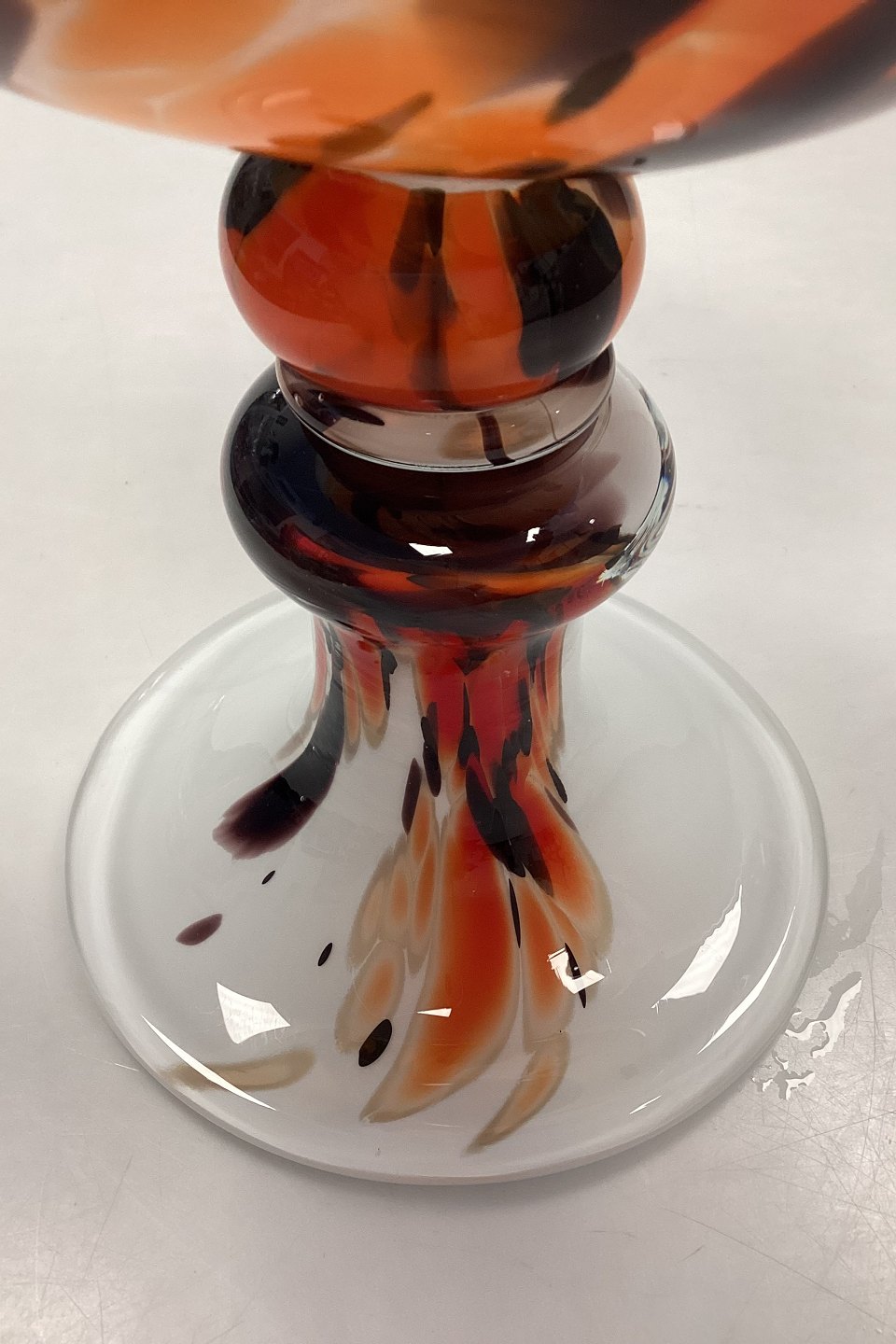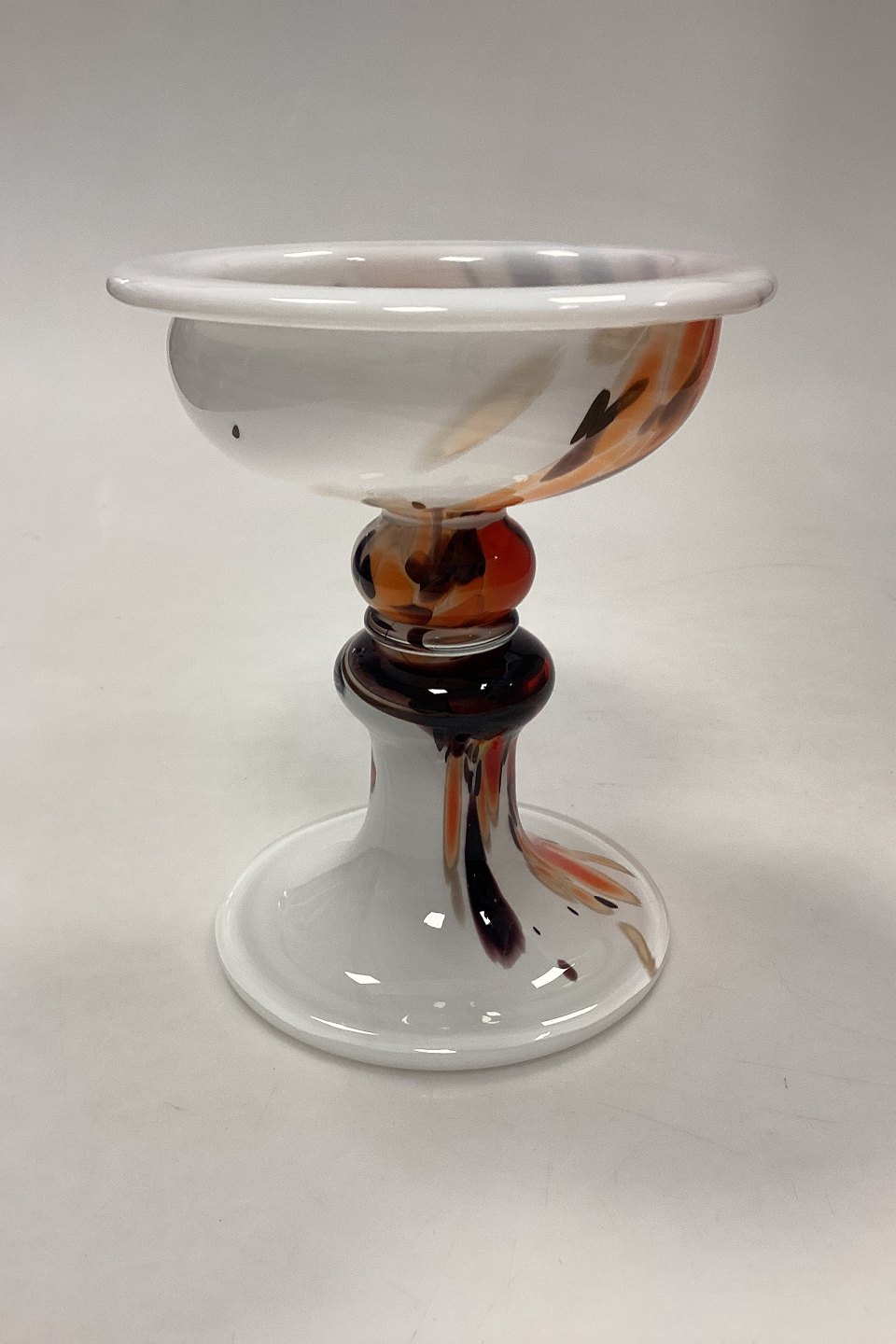 Holmegaard Cascade Glass Bowl / Candlestick. Designed by Per Lütken. The bowl is opal white, with multi-colored orange, black, and beige tones. Signed HG6 PL.