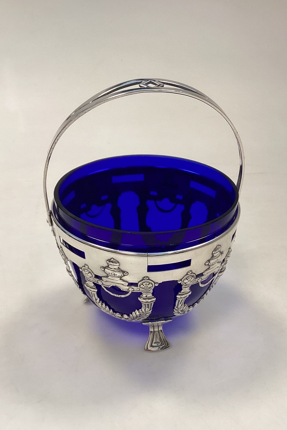 DFA Sukker / kandis i sølvplet med blå glas indsats