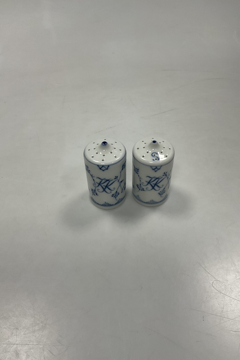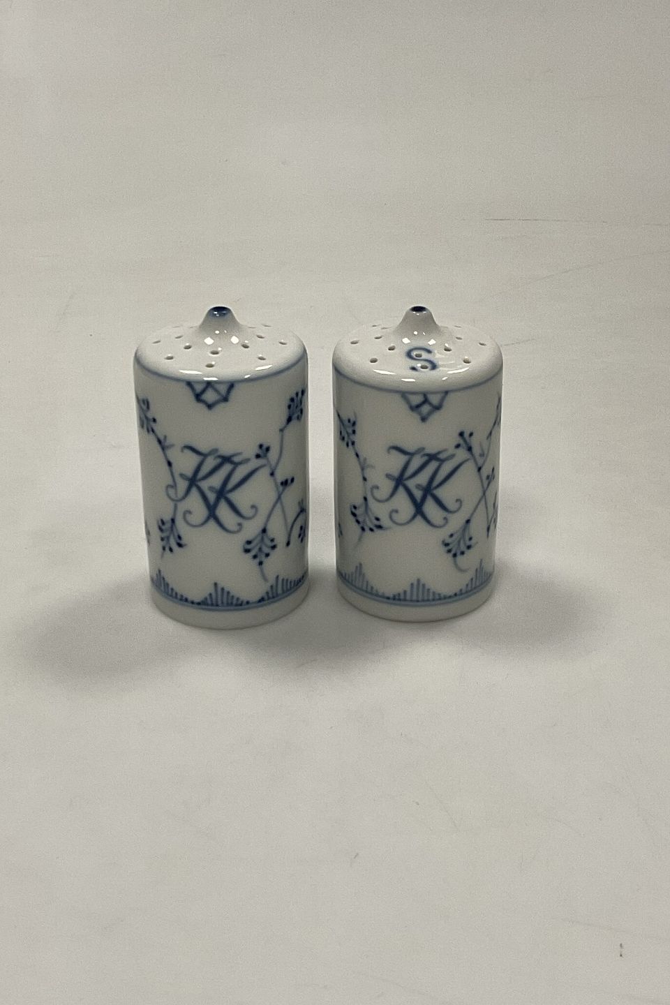 Bing og Grøndahl Blåmalet Musselmalet Hotel Salt og Peber Bøsse No. 1097 og 1098 med monogram