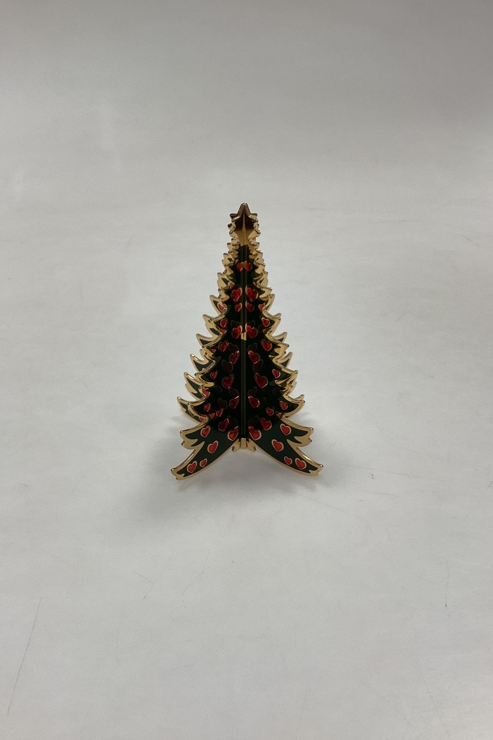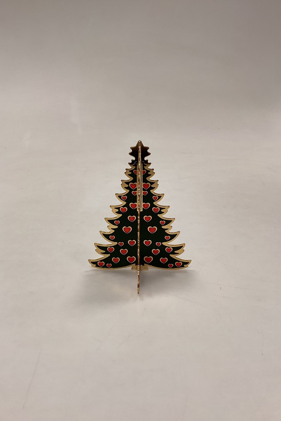 Royal Copenhagen Christmas Small Christmas Tree. Table decoration in brass with green enamel and red hearts.