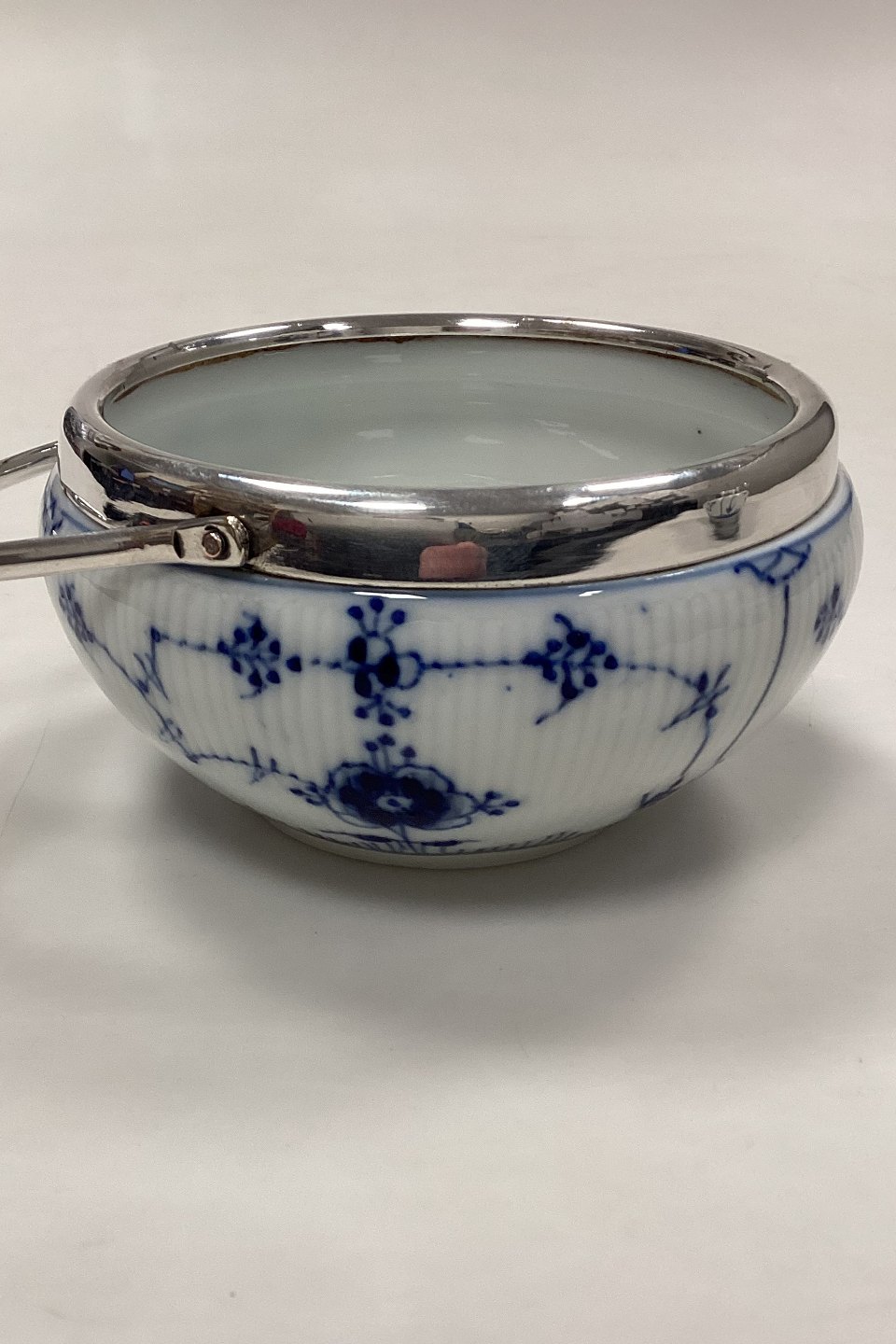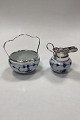 Tysk musselmalet Sukker og Fløde sæt, med metal montering, muligvis nikkel.