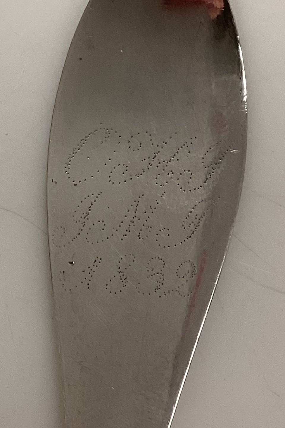 Ornamental Dekorations ske i sølv 1832 med Sneglehus