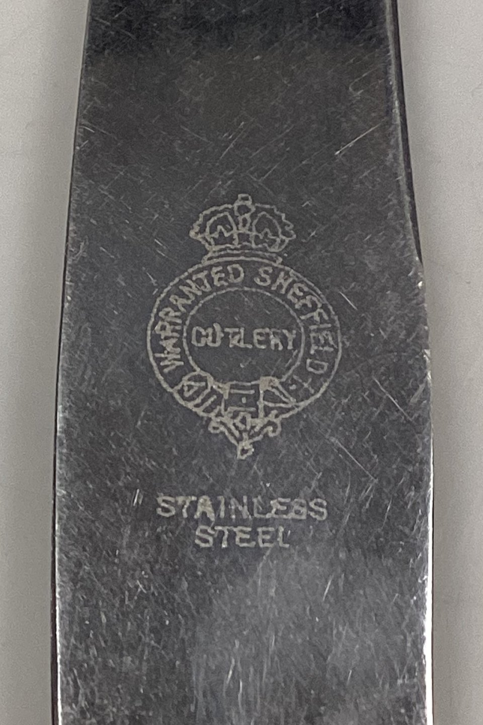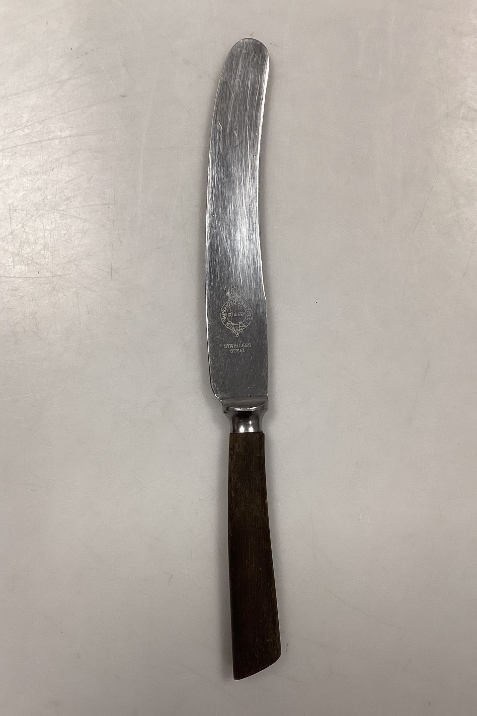 Sheffield Stainless Dining Knife with dark bakelite/plastic handle. In good condition.