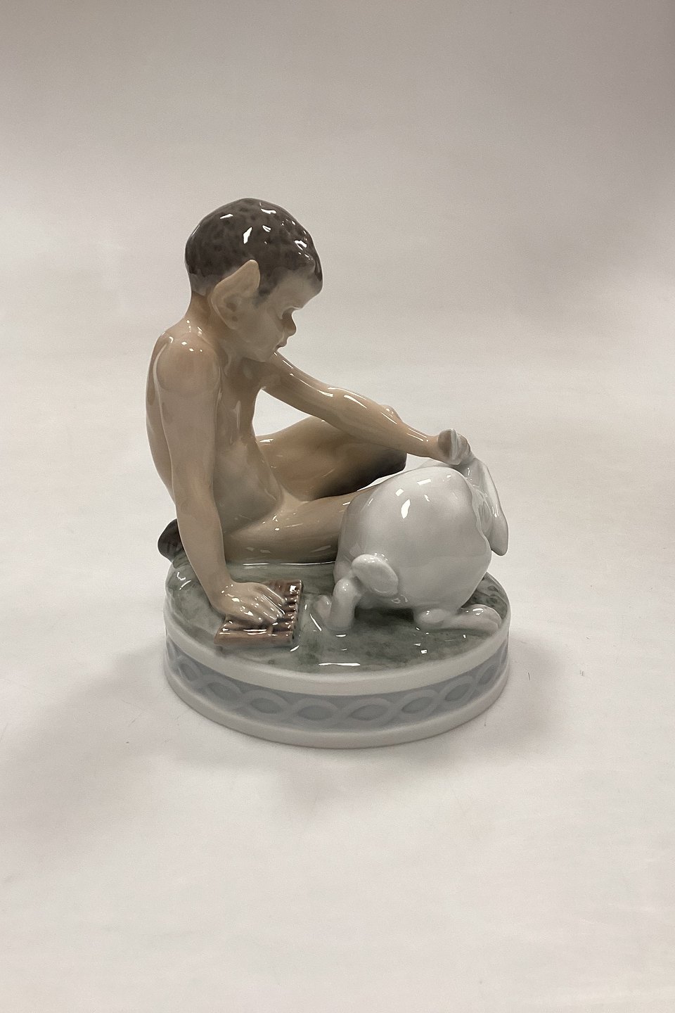 Royal Copenhagen Figur Faun med Kanin No. 439. Designet af Chr. Thomsen i 1903.