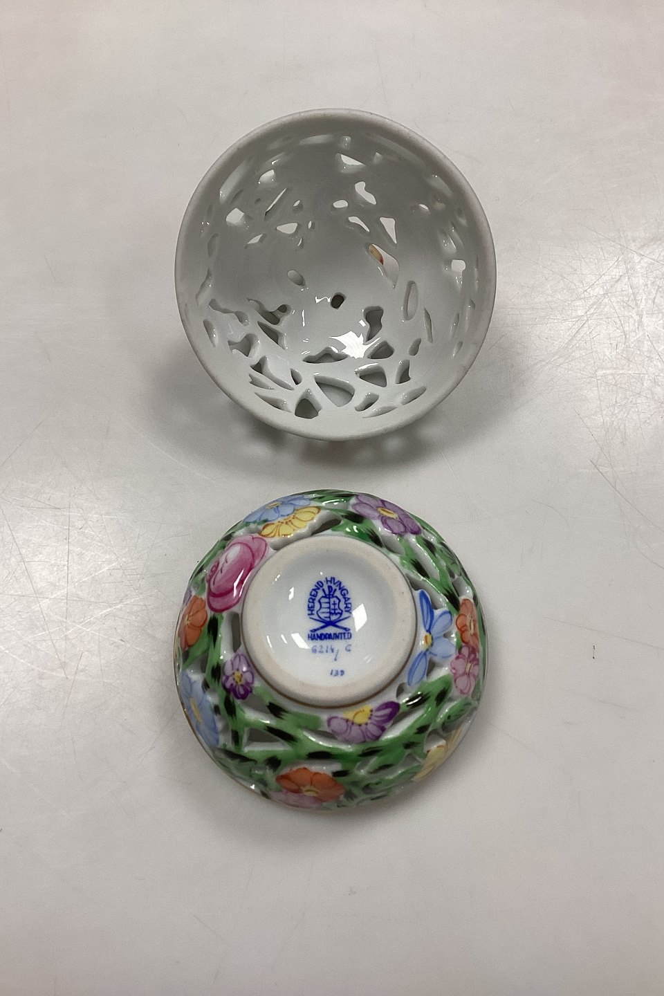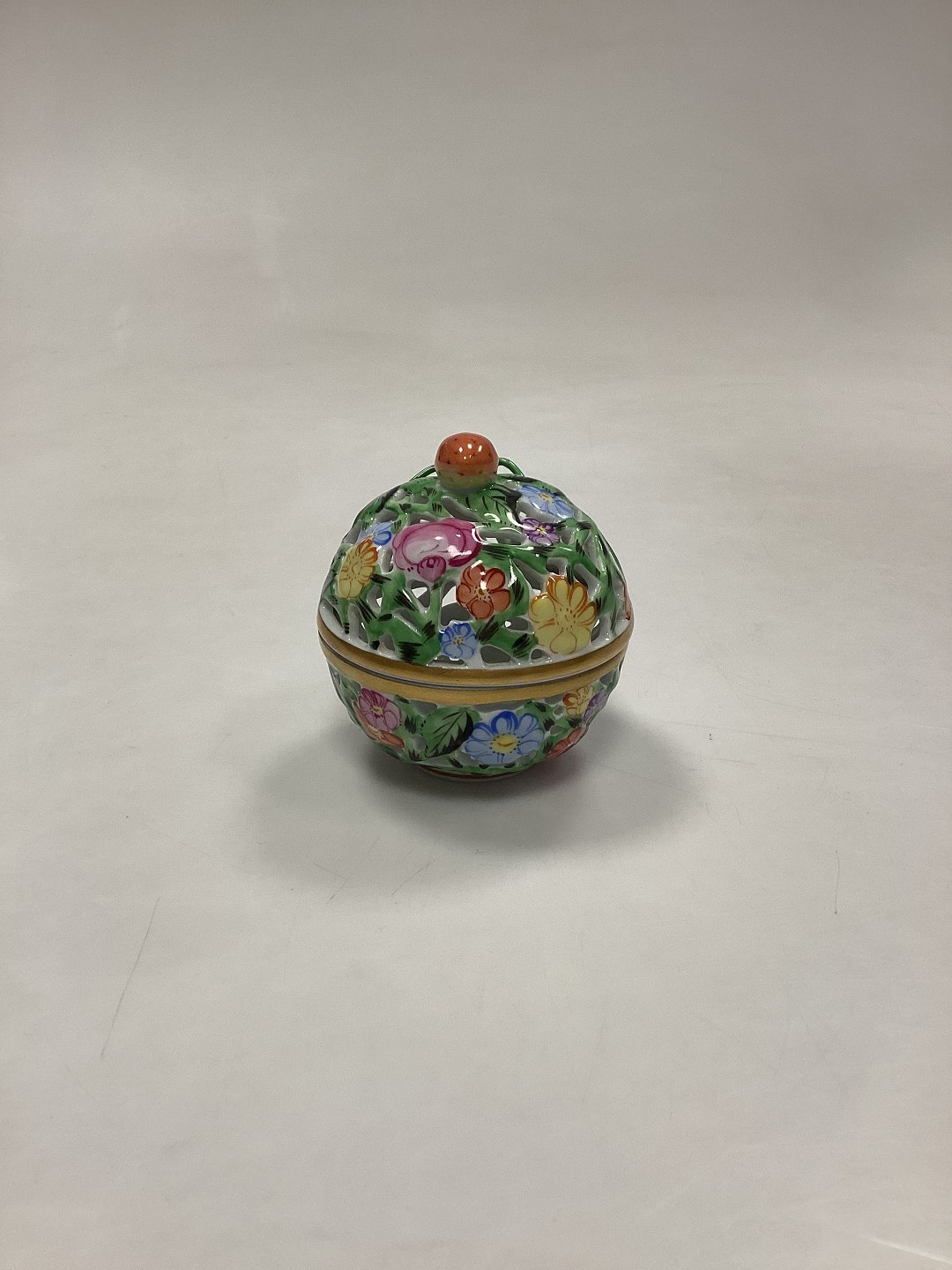 Herend Hungary Bonbonniere, openwork No. 6214. Multicolored with flowers.