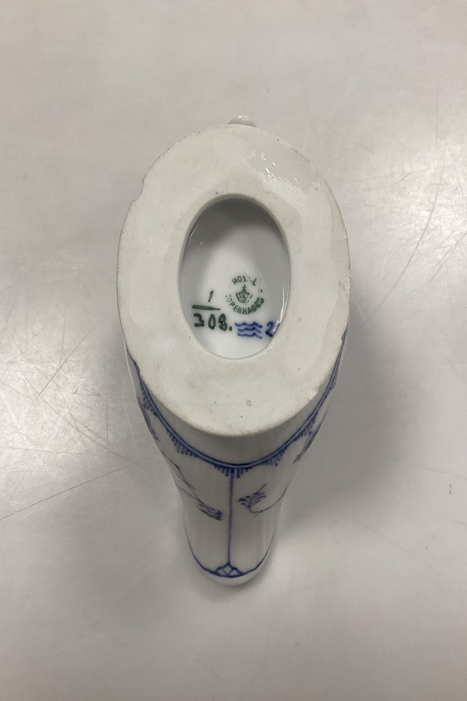 Royal Copenhagen Blue Fluted Plain Sauce Bowl No. 308. With several small chips on the foot, see photos.