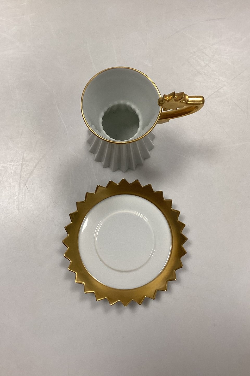 Rosenthal Studio-Line Kunstnerkop No. 23. Designet og signeret af Otto Piene. Udført i hvid porcelæn med gulddekoration.