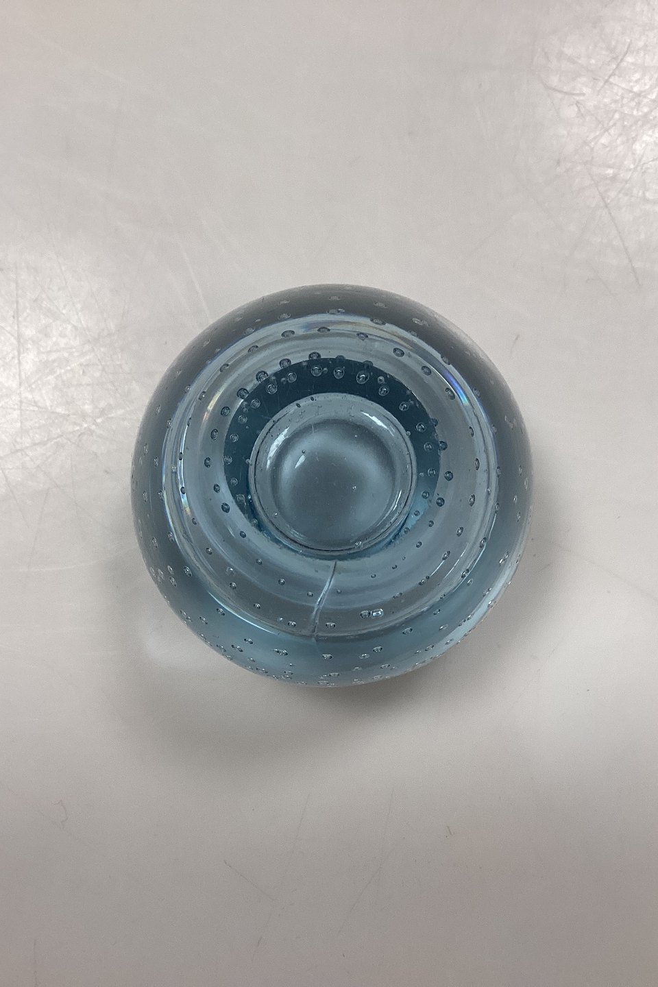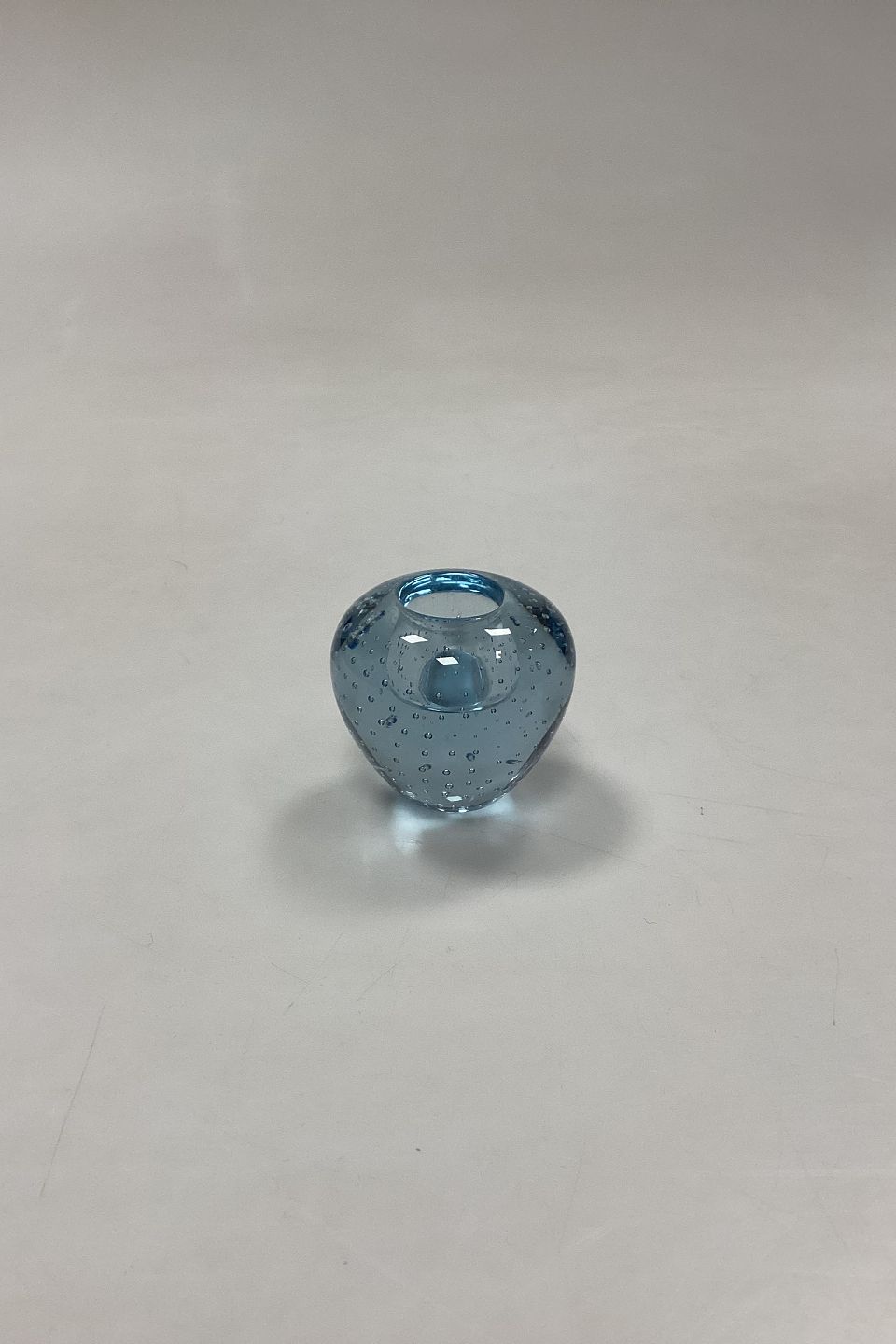 Lille Glaslysestage med bobler. Sandsynligvis skandinavisk fra 1950´erne. Farve: Lyseblå. Små ridser og en støbningsrevne på siden.