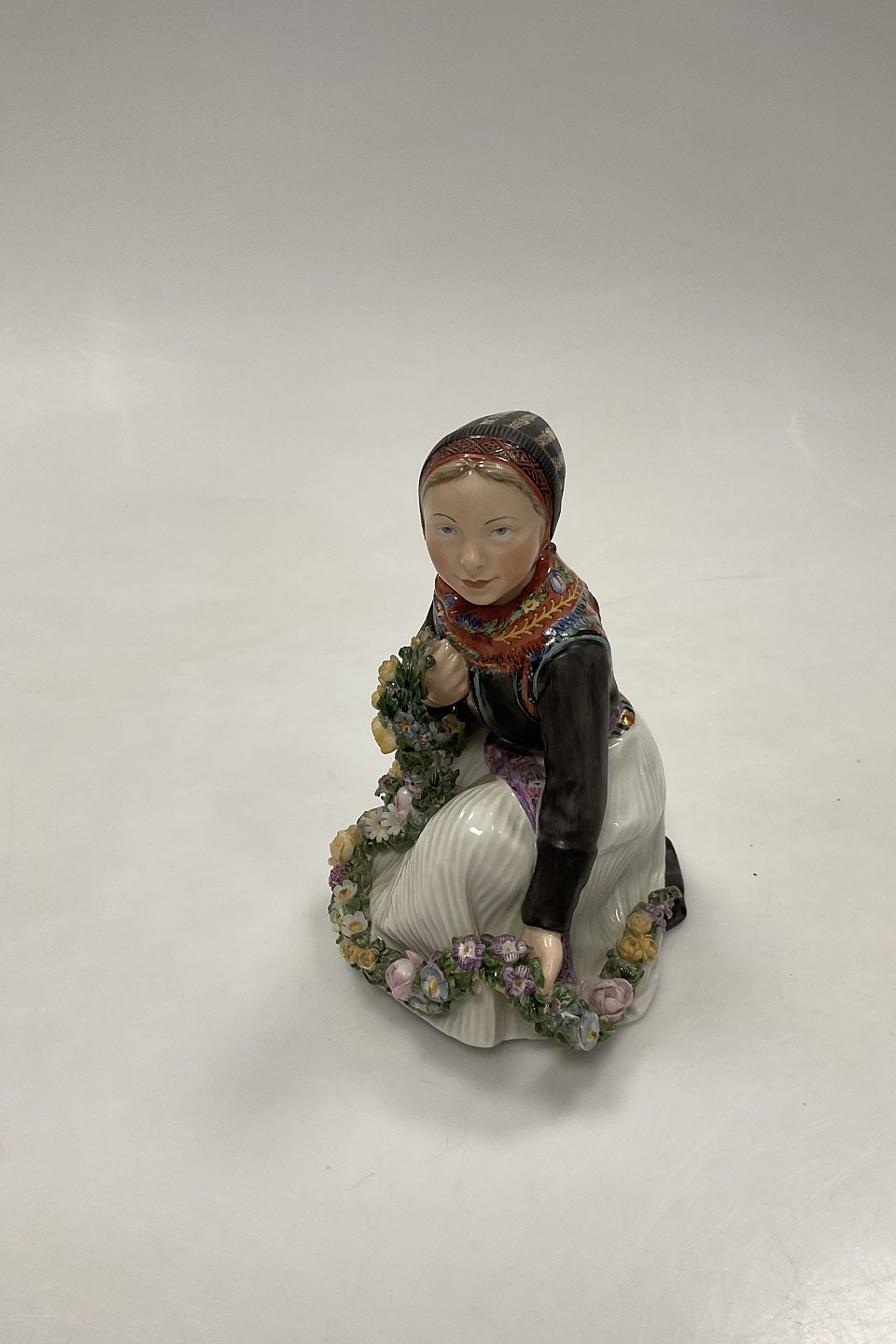 Royal Copenhagen Overglasur figur af Amager Blomster Pige No. 12412.