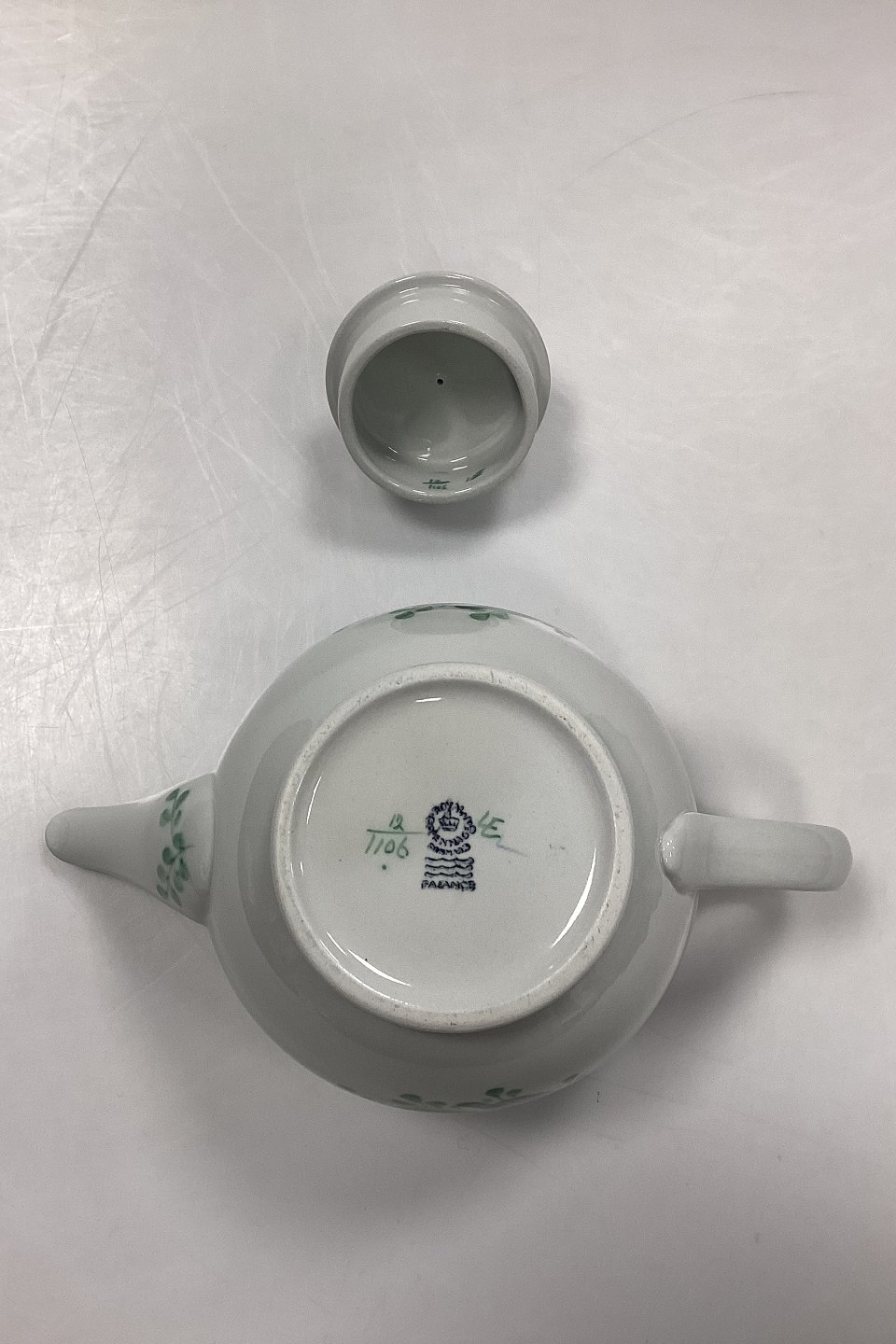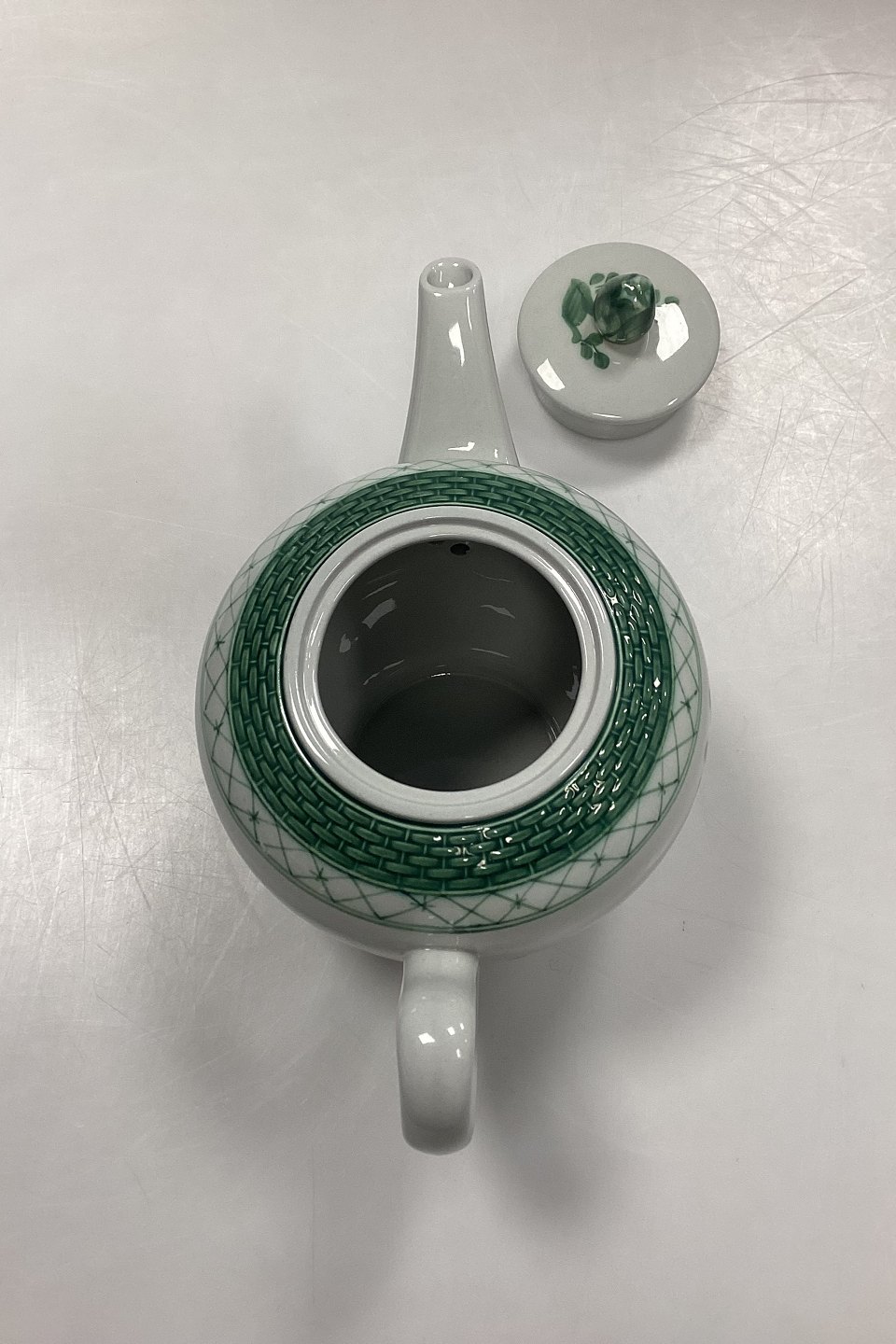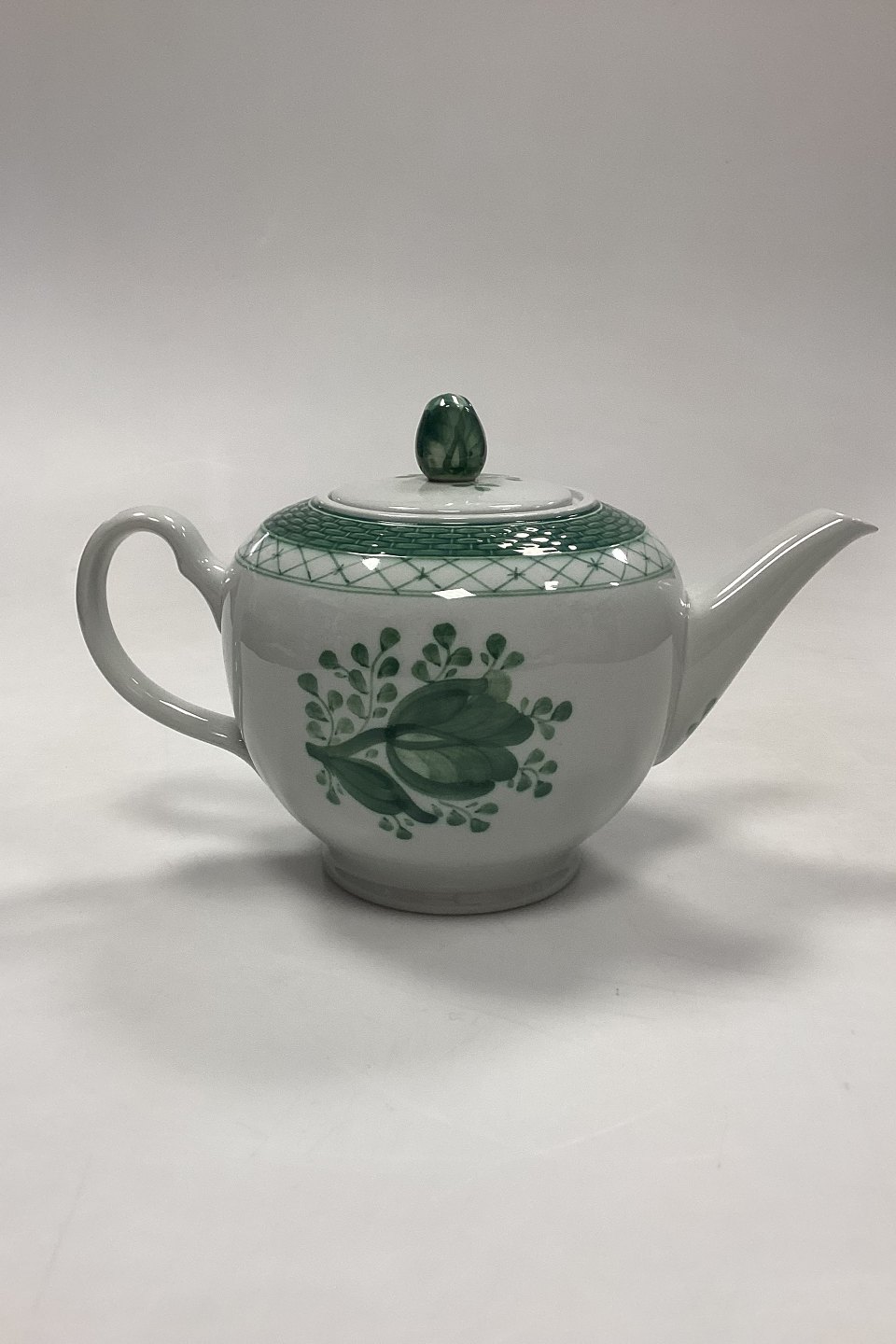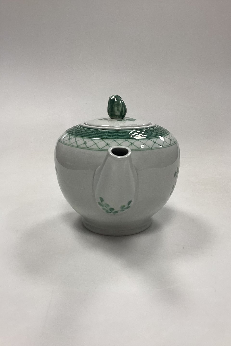 Royal Copenhagen Grøn Tranquebar Tekande No. 1106. Måler 15 cm x 25 cm / 5.91 in. x 9.85 in.