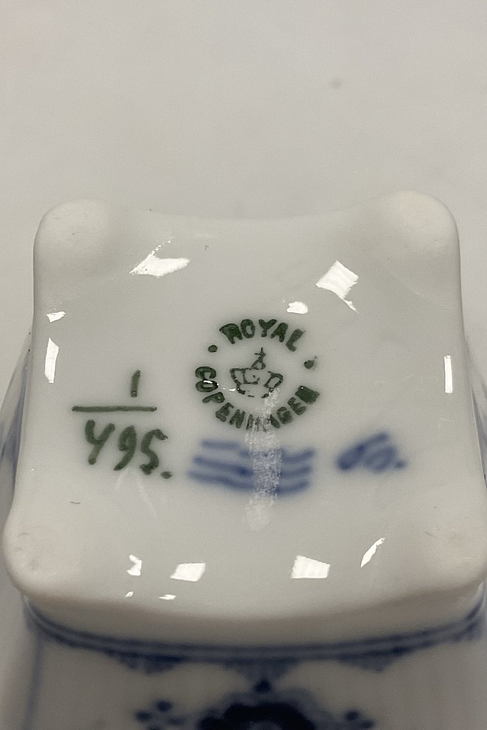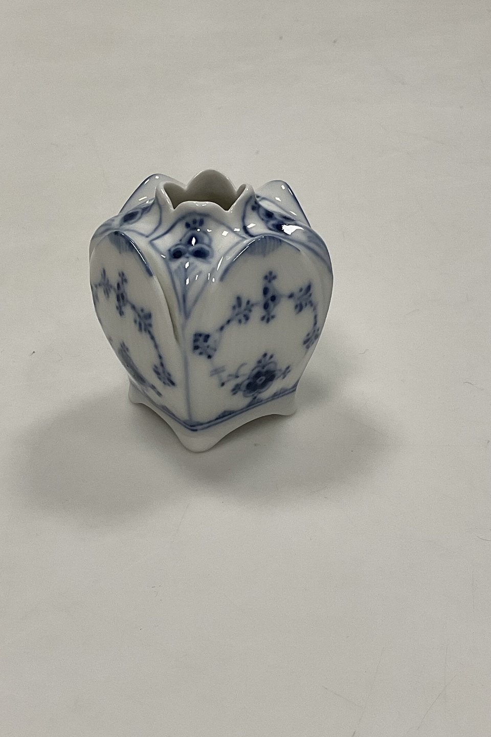 Royal Copenhagen Musselmalet Riflet Bordkortholder og Vase No. 495.
