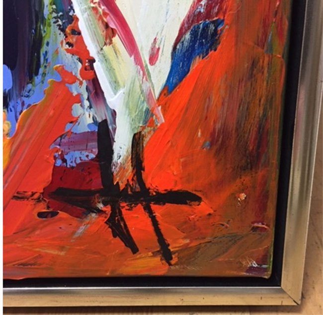 "Komposition" Flot maleri i sølv svæveramme.