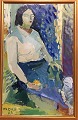 "Interiør med kvinde" Olie maleri på lærred.