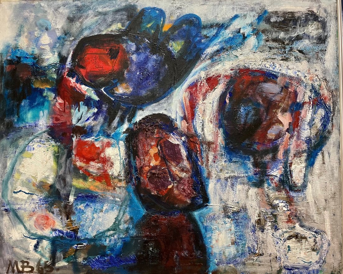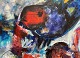 "Cobra komposition" Olie maleri på lærred, monteret i elegant ny smal sølv svæveramme.